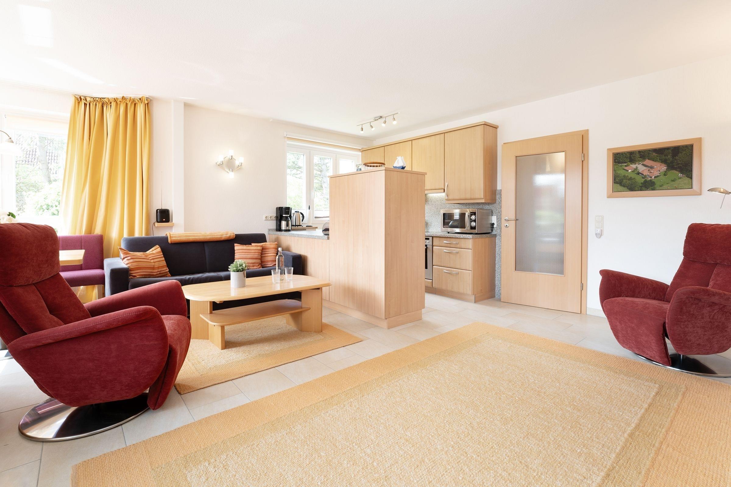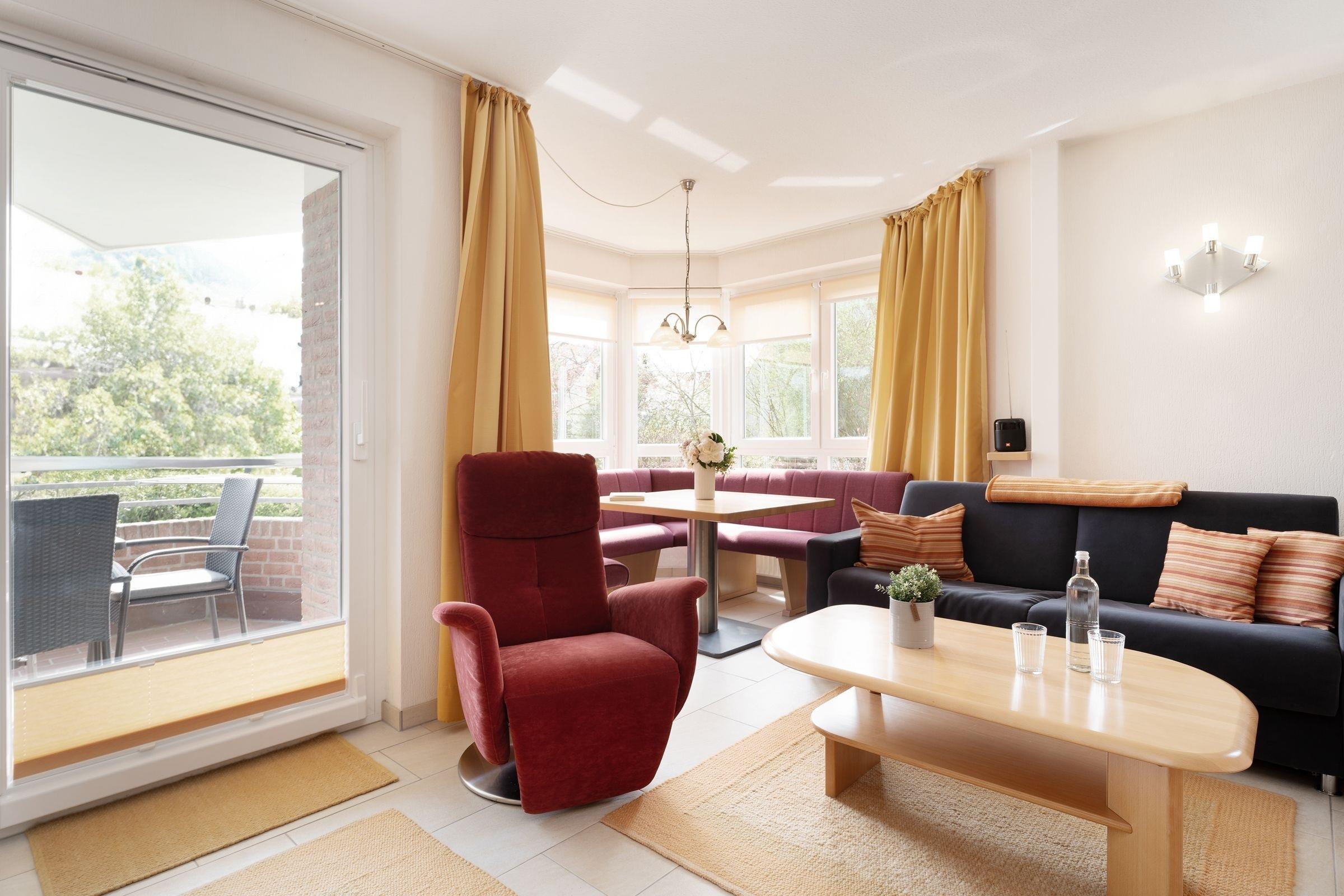 Zentral und strandnah in bester Lage von Kellenhusen: traumhafte, ca. 56 m² große 3-Zimmer-Ferienwohnung im Erdgeschoss mit Balkon für bis zu 4 Personen.