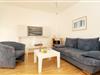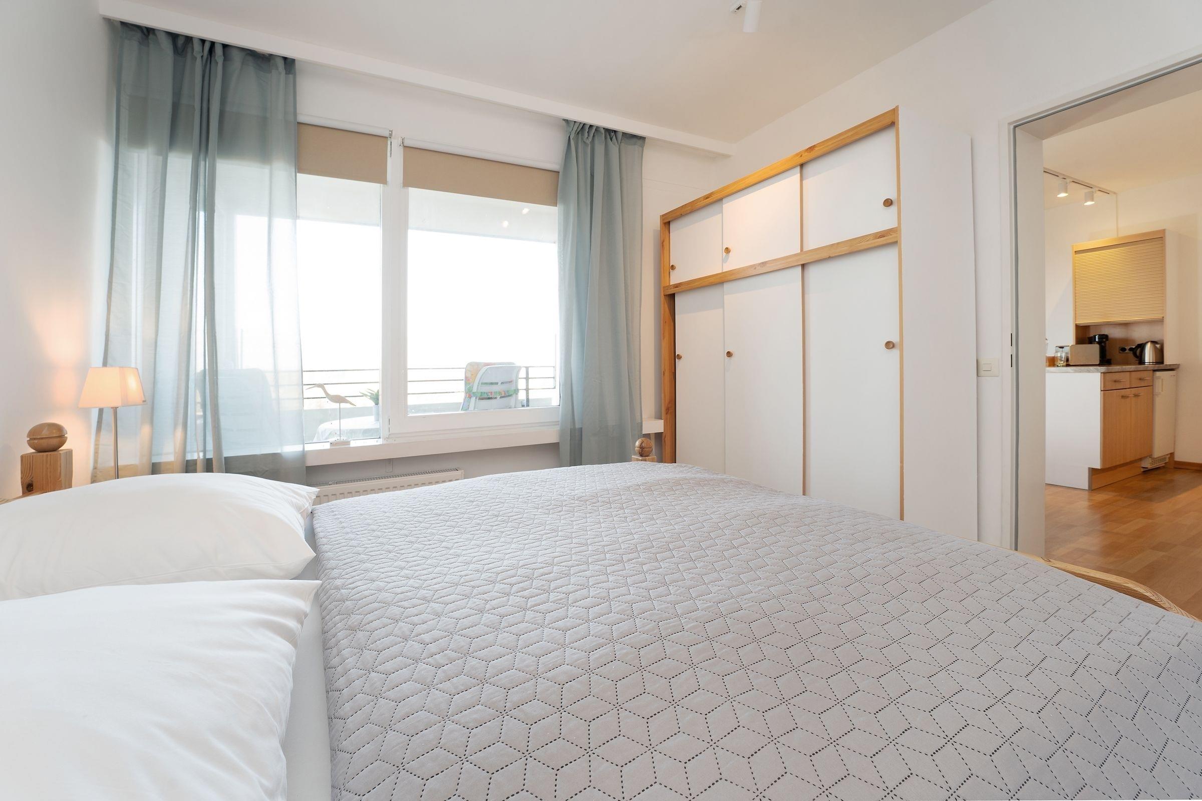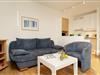 Der Name dieser schönen Wohnung ist Programm: Sie heißt Abendsonne – und genau diese können Sie auf dem großzügigen, möblierten Balkon in Nordwest-Ausrichtung gut geschützt genießen. Dazu gibt es einen herrlichen Weitblick. Auch vom Wohnzimmer aus haben Sie den tollen Blick, nehmen Sie Platz auf dem meerblauen Sofa oder dem Sessel und lassen Sie sich vom TV-Programm oder der Stereoanlage unterhalten. Die funktional ausgestattete Küche ist in den Wohnbereich integriert, ein Tresen fungiert als angenehmer Raumteiler. Den Weitblick können Sie übrigens auch vom Doppelbett (2x 90x200cm) im Schlafzimmer aus genießen, da man über den Balkon hinweg rausschauen kann. Besonders praktisch ist der Insektenschutz am Schlafzimmerfenster - so können Sie bei offenem Fenster im Bett vielleicht das Meeresrauschen hören. Der praktische Flur verfügt über Ganzkörperspiegel und Garderobe. Das innenliegende Duschbad ist hell gefliest und macht Sie munter für den nächsten Tag an der Ostsee. Der Strand ist nur rund 130 Meter entfernt.