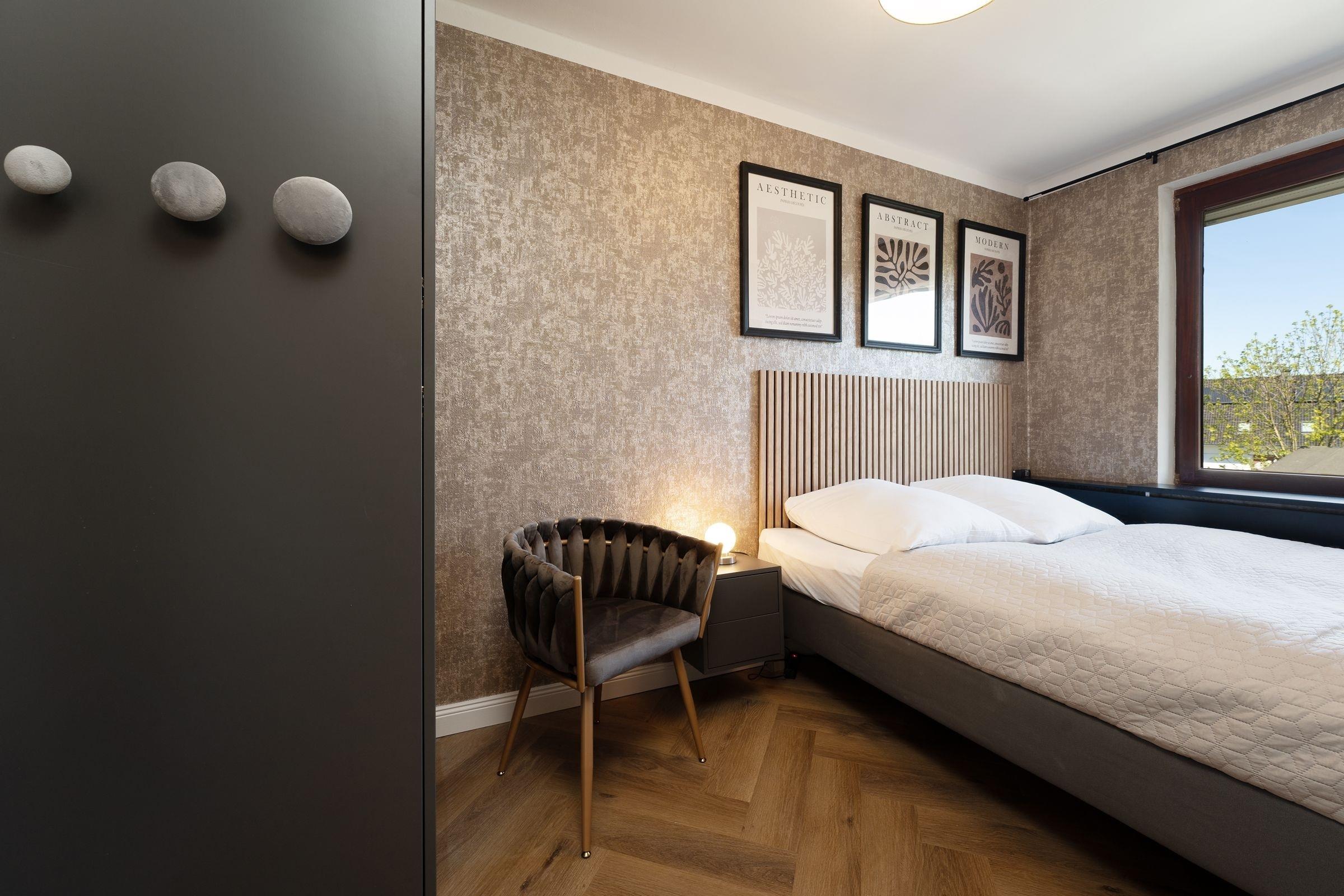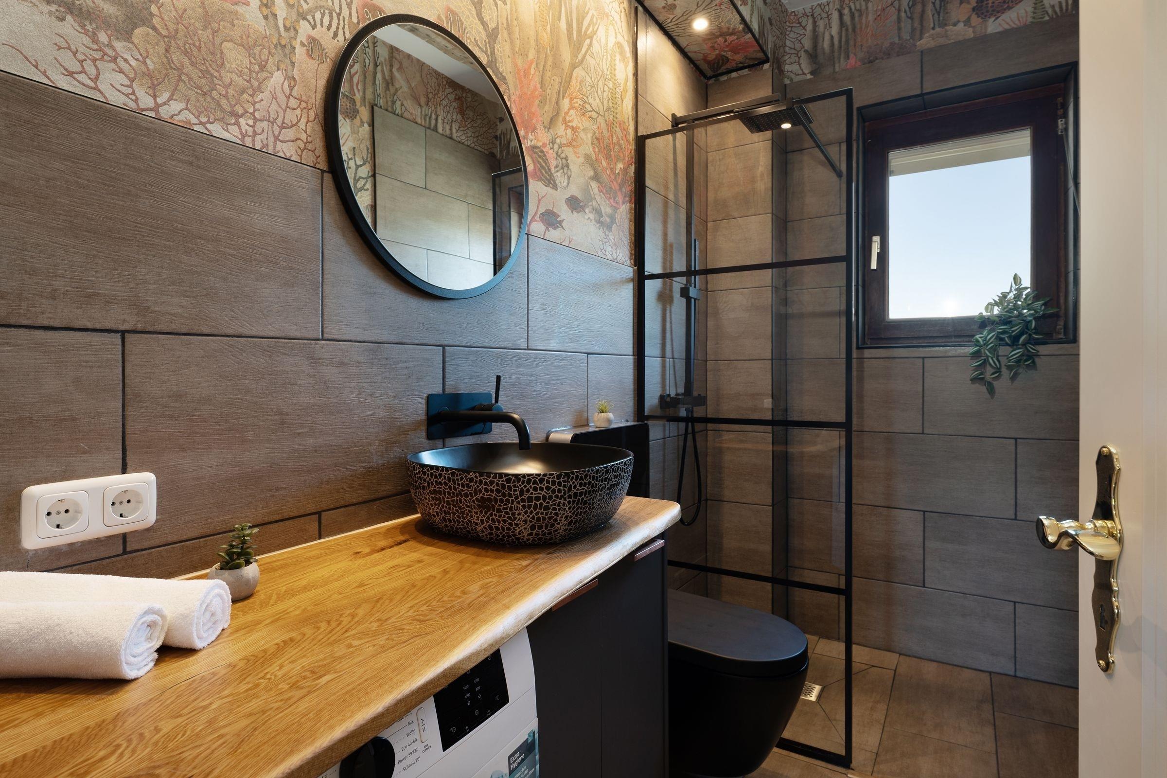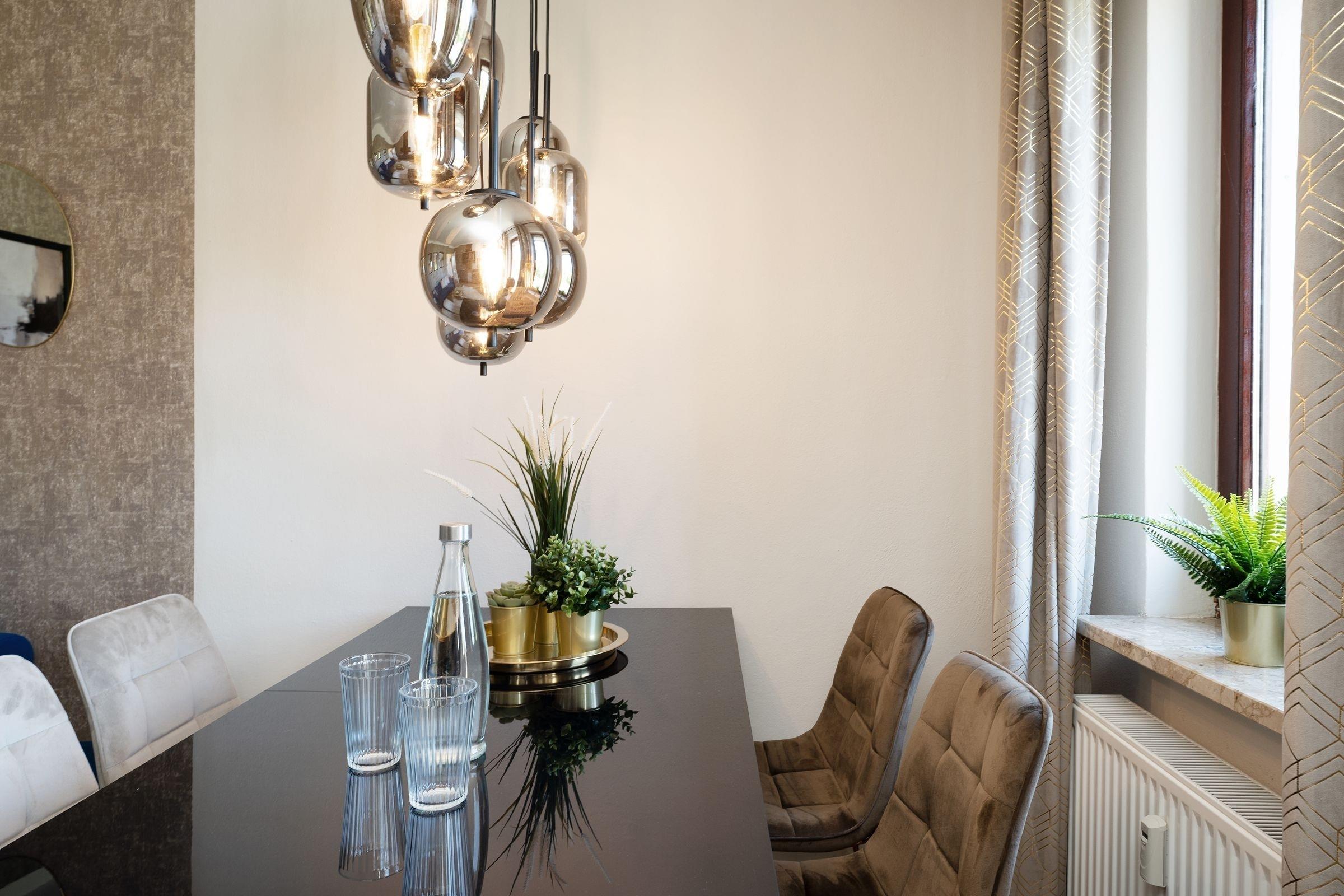 Wunderbar anders präsentiert sich diese individuelle Ferienwohnung Ihren Gästen. Im Wohn- und Essbereich findet jeder ein Plätzchen zum Entspannen und ein gemeinsames Dinner am gemütlichen Esstisch rundet einen aufregenden Urlaubstag ab. Reisen Sie mit 5 Personen, lässt sich das Sofa in einen komfortablen Schlafplatz verwandeln (ca. 125x200 cm). Vom Wohnbereich aus gelangen Sie auch auf den möblierten Balkon in Südlage, auf dem Sie das gute Wetter auskosten können. Für angenehme Nächte stehen Ihnen 2 separate Schlafzimmer mit je einem Doppelbett (ca. 180x200cm) und einem Kleiderschrank zur Verfügung. Lassen Sie sich vom Flair des Design-Duschbades bezaubern und starten Sie mit einer erfrischenden Dusche in den Tag.