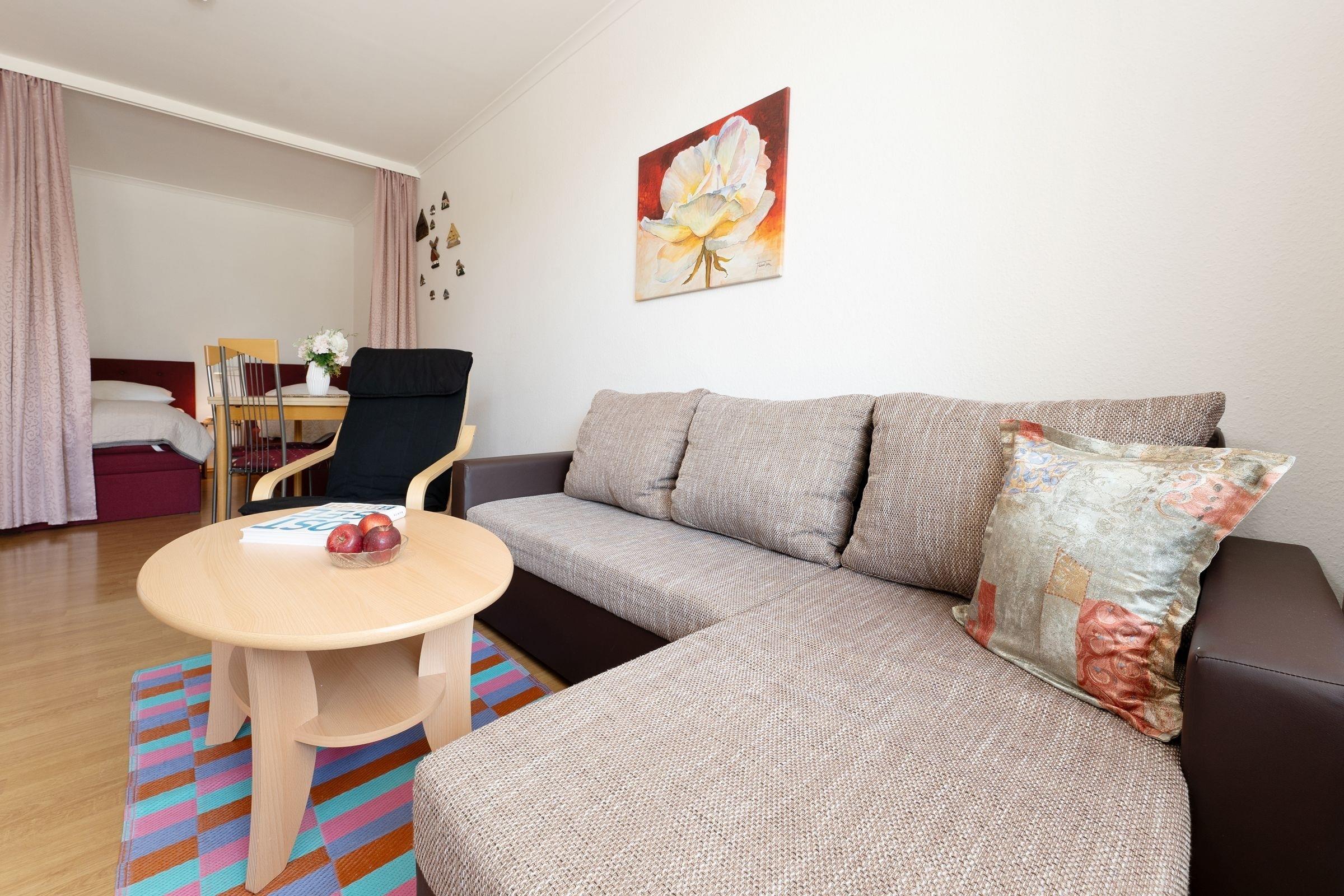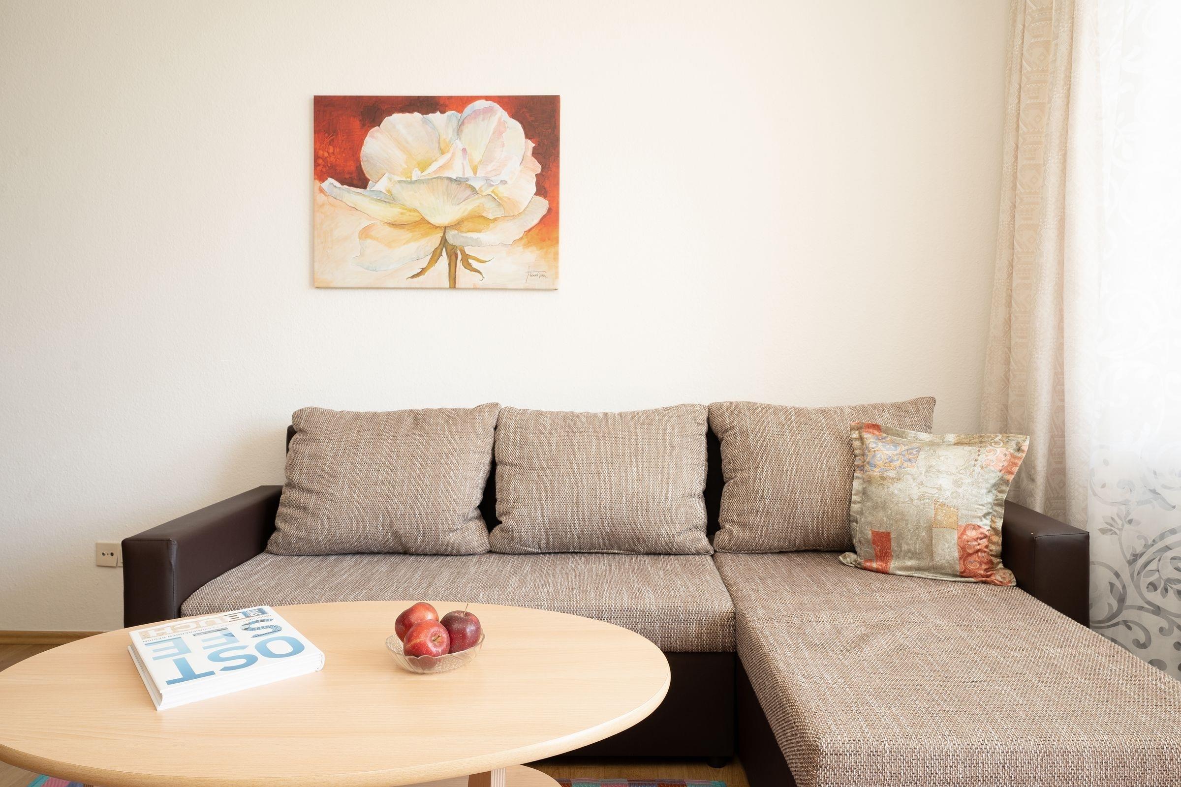Wohnzimmer: 1 Boxspringbett (2x 90x200 cm), TV, Platz für Babybett vorhanden