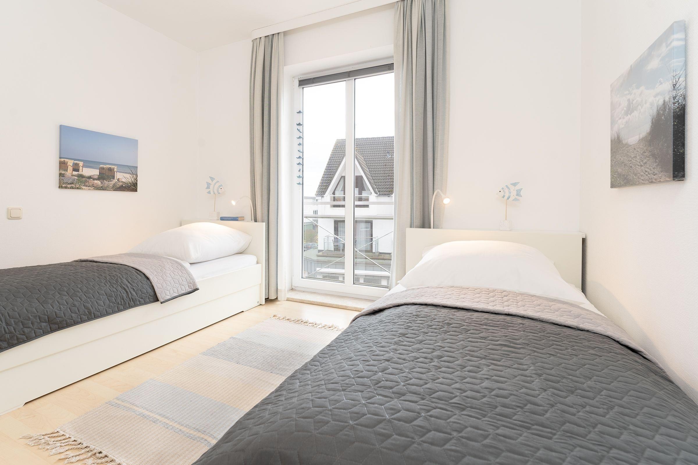 Schlafzimmer 2: 2 Einzelbett (je 80x200 cm), Verdunkelung (Jalousie), kein Platz für Babybett