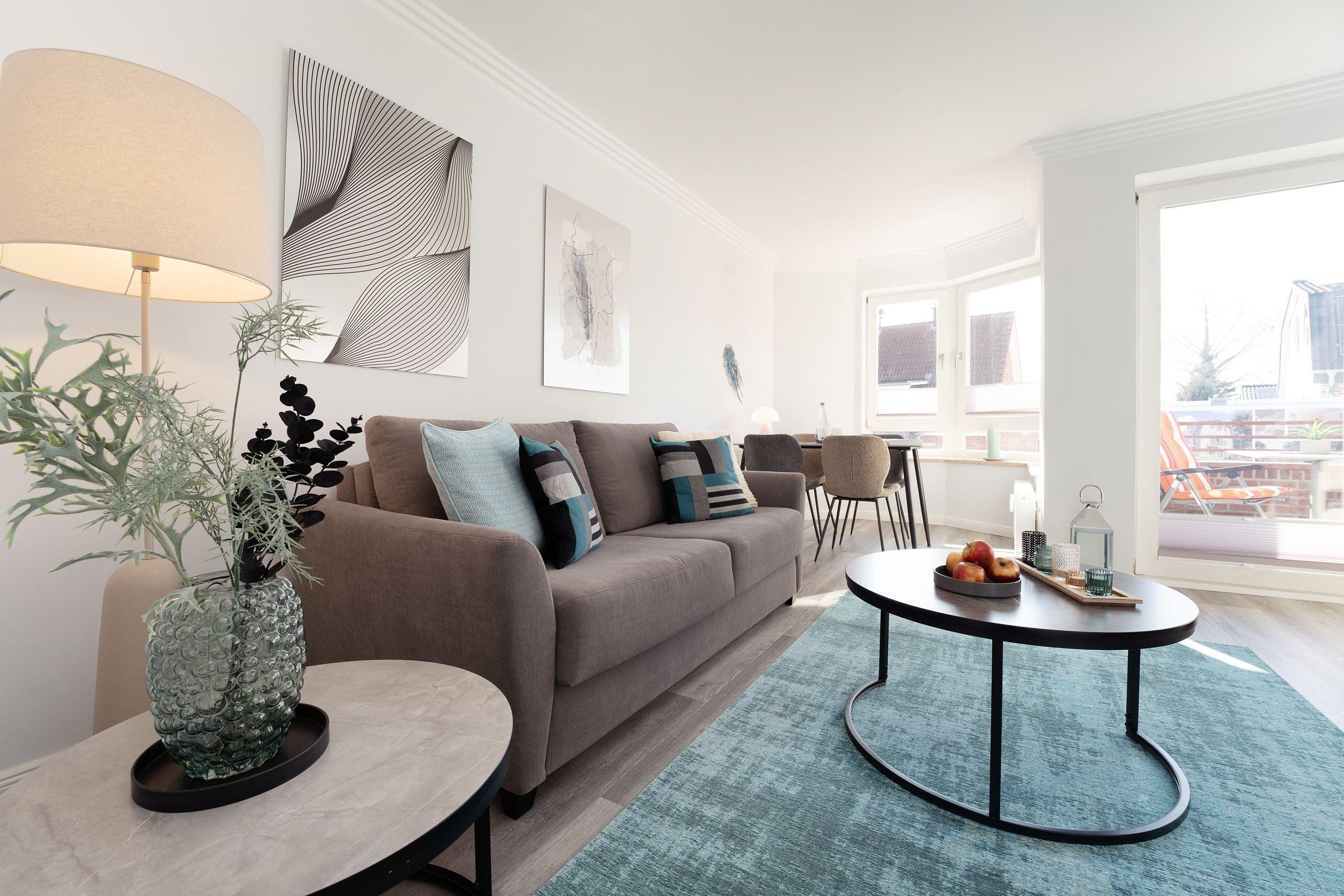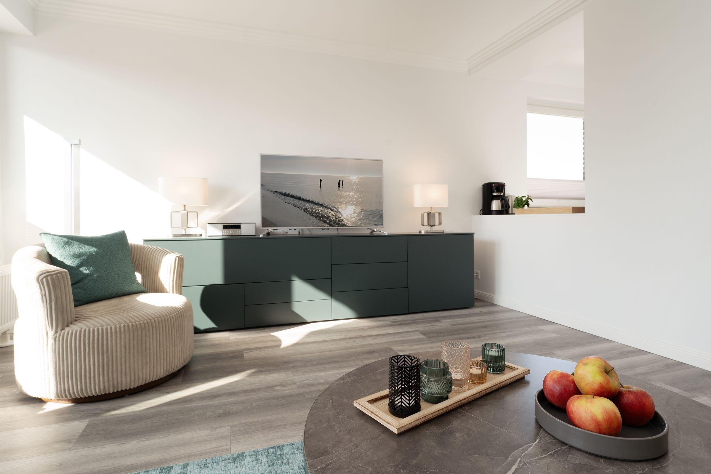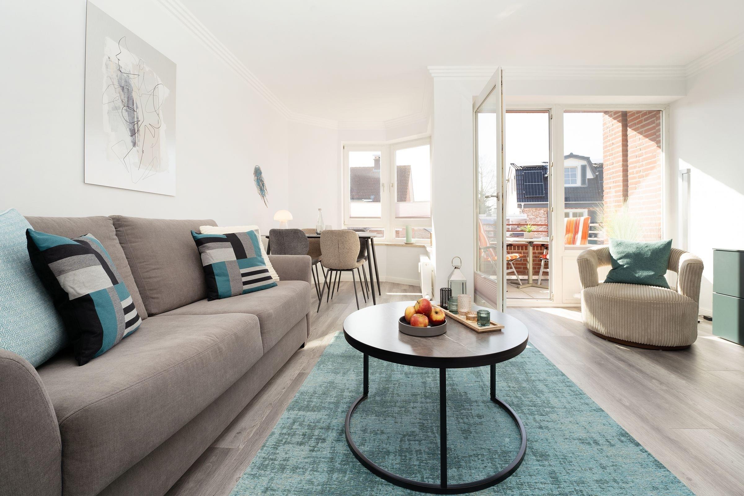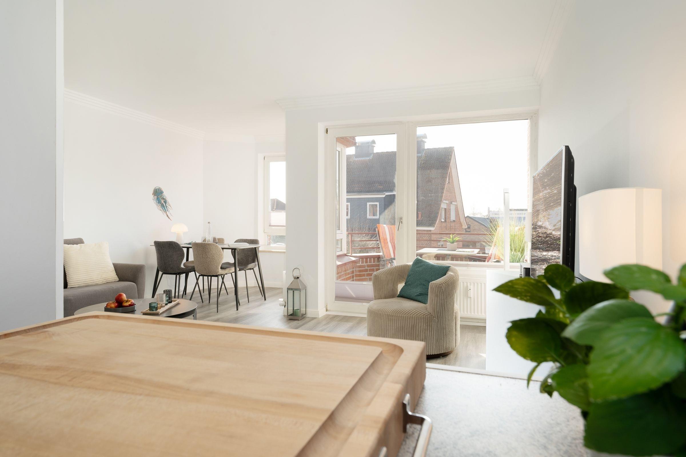 Moderne 2-Zimmer-Ferienwohnung mit Balkon und WLAN, nur 240 m vom Strand in Kellenhusen entfernt.
