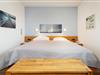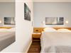 Für erholsamen Schlaf sorgen zwei separate Schlafzimmer: eines mit komfortablem Doppelbett (2x 90x200 cm), das andere mit einem ausziehbaren Kojenbett (2x 80x200 cm) – beide mit Kleiderschrank und praktischen Verdunkelungsmöglichkeiten für ruhige Nächte.