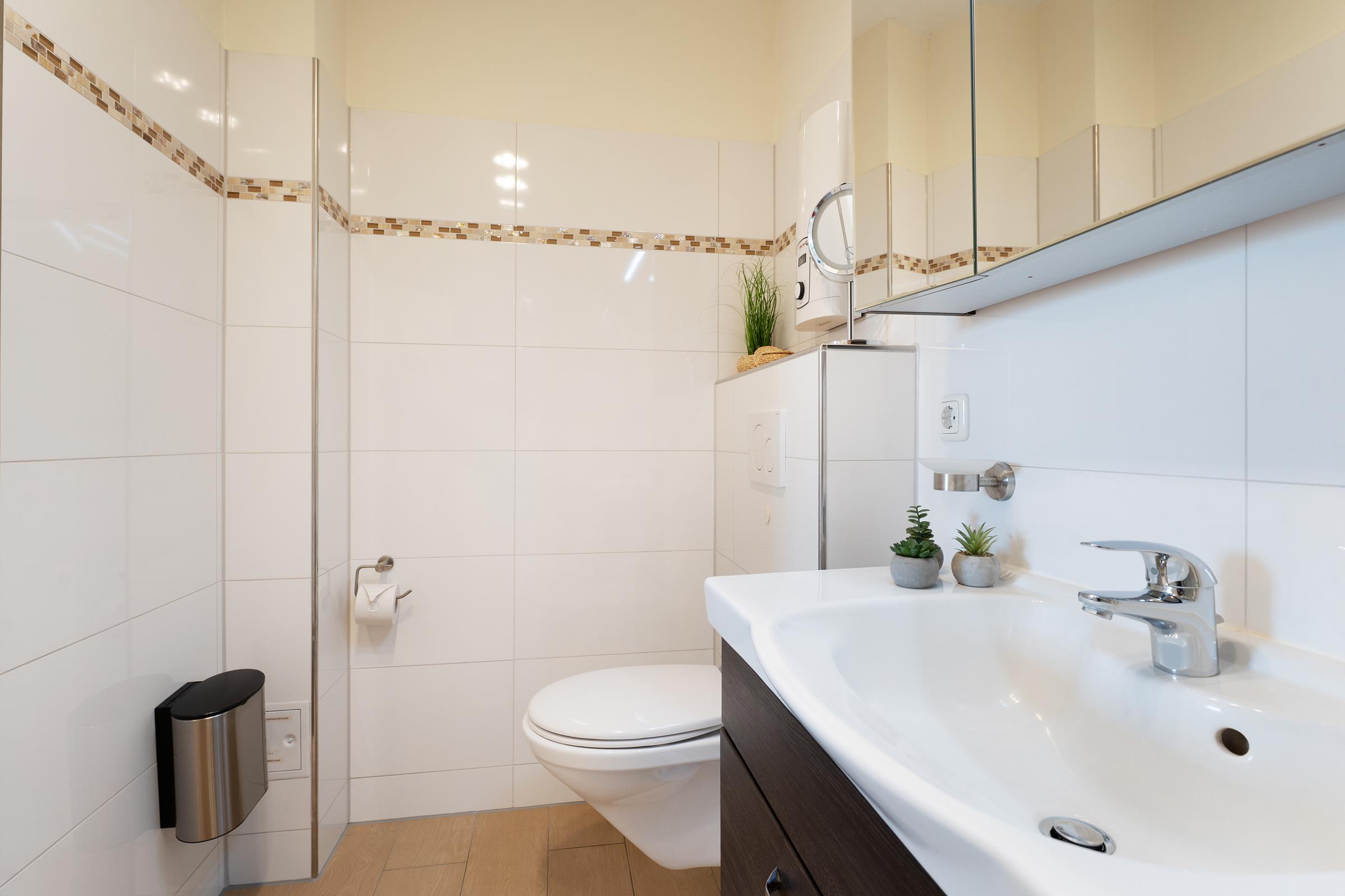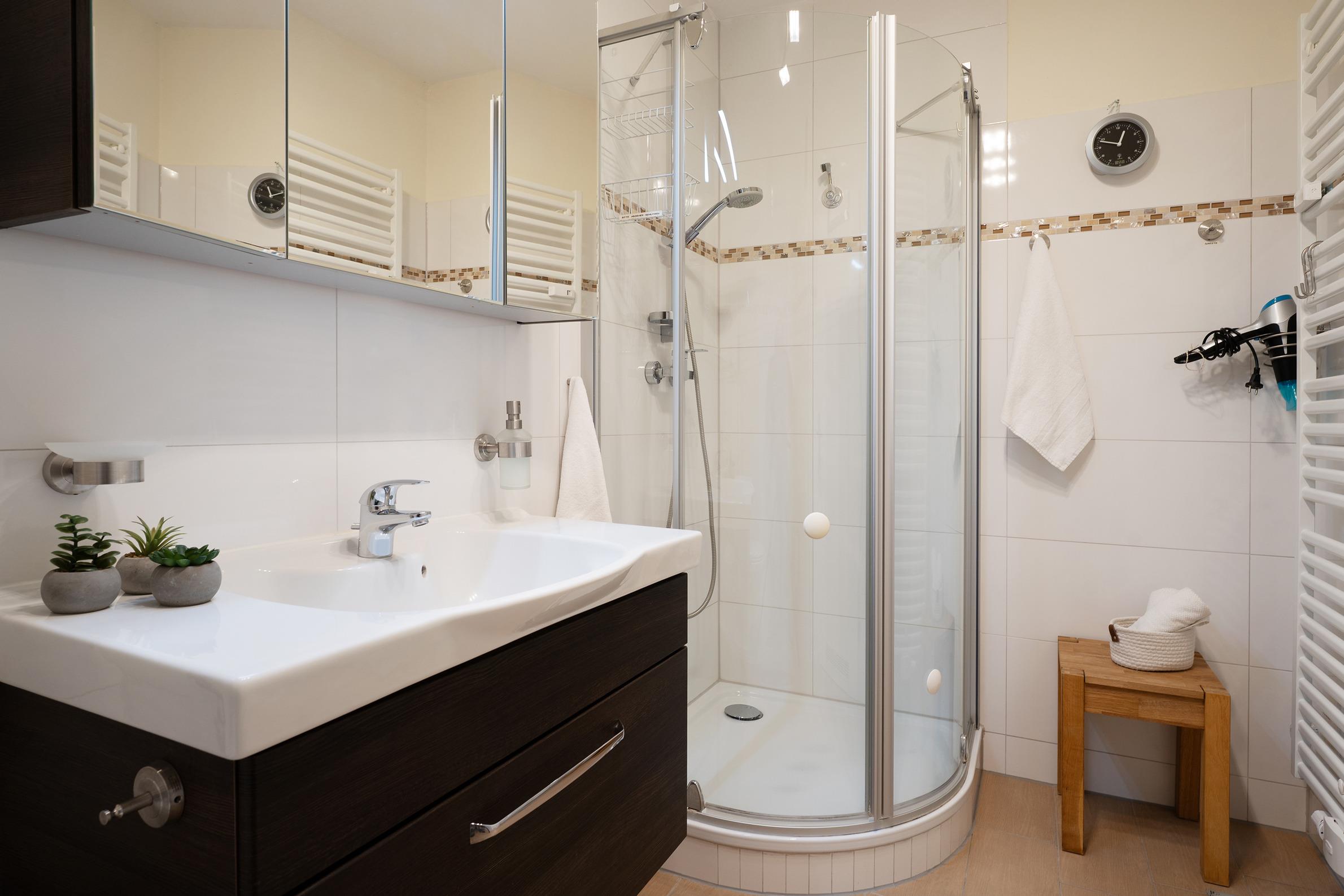 Ein modernes Duschbad rundet das Wohlfühlambiente ab.