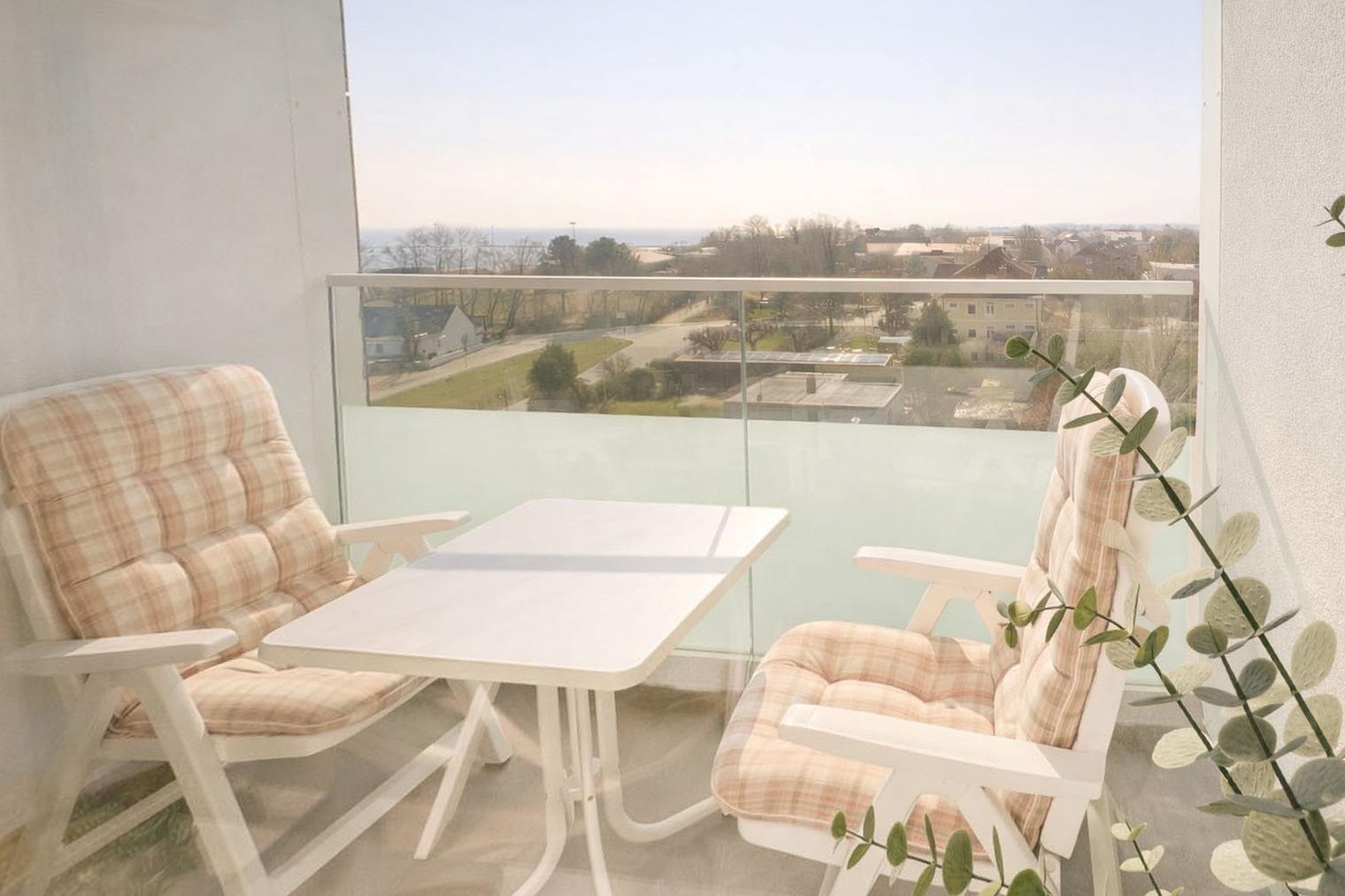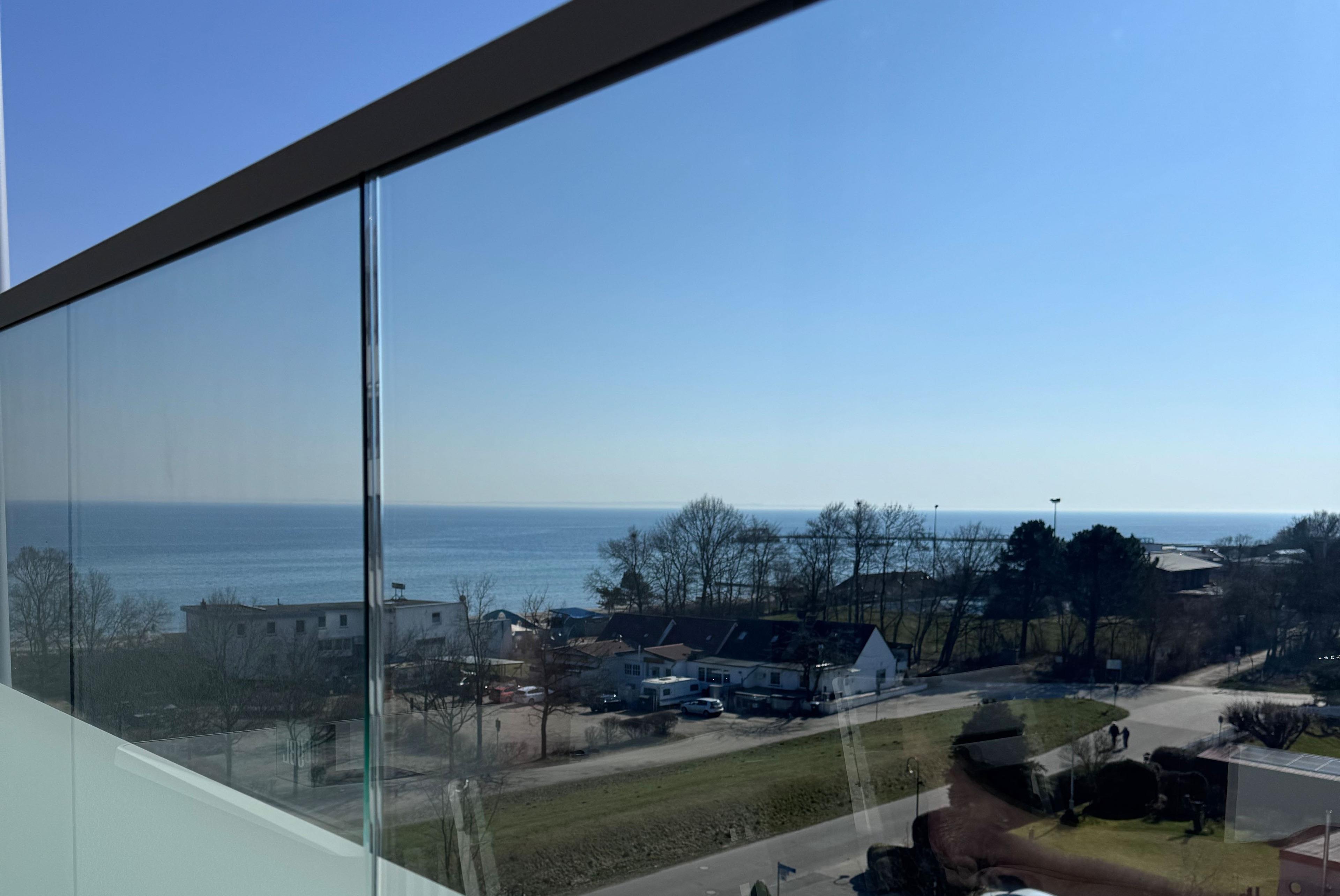 Die Wohnung ist nach Südwest ausgerichtet und liegt im 6. Stock - man kann hier wundervolle Sonnenuntergänge in der Lübecker Bucht genießen und hat vom Wohnzimmer und Balkon aus einen wunderschönen Blick aufs Meer.