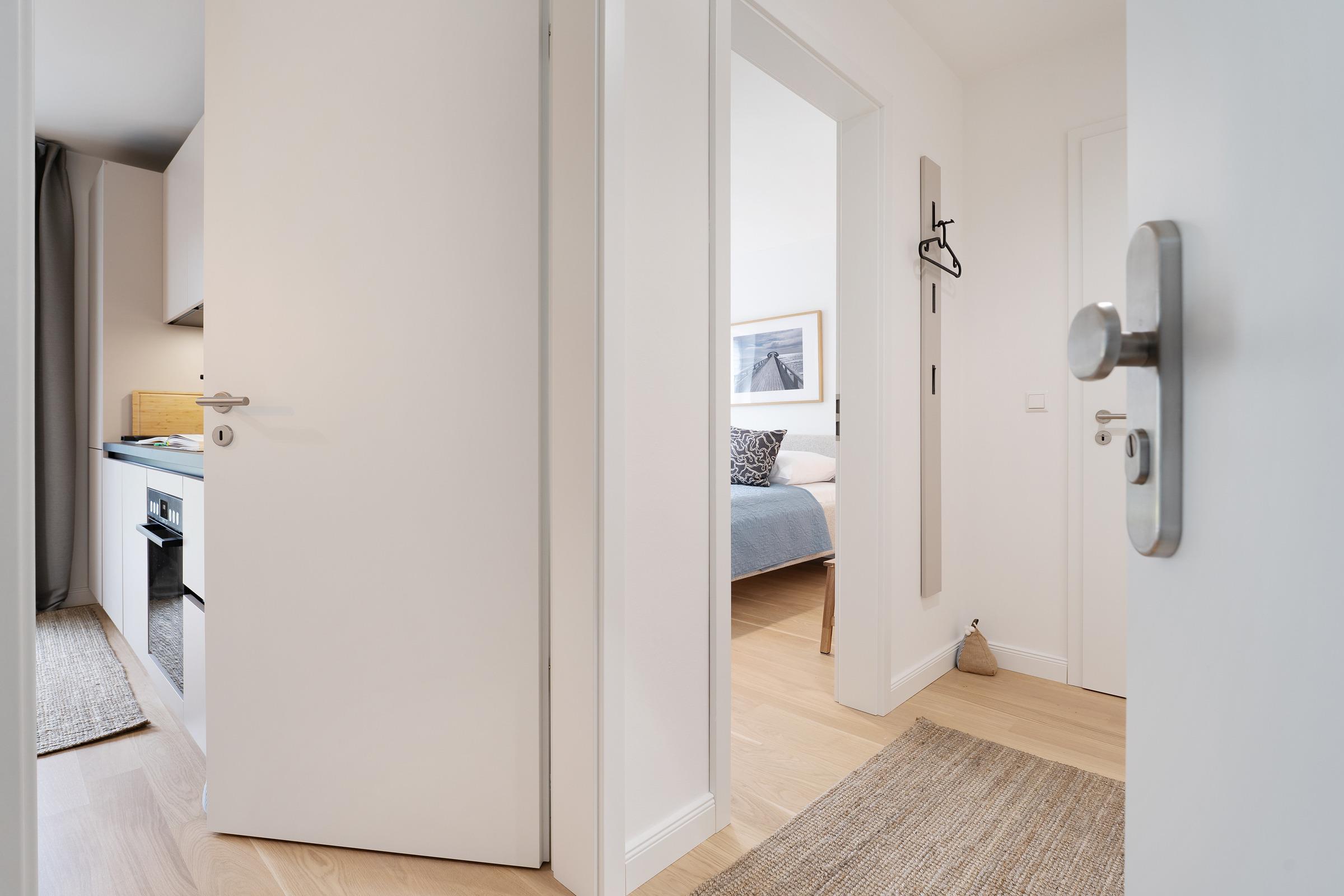 Die angrenzende Küche ist mit Geschirrspüler, Ceranfeld, Backofen, Kühlschrank, Kaffeemaschine und weiteren Annehmlichkeiten bestens ausgestattet. Das separate separate Schlafzimmer mit bequemem Doppelbett sorgt für erholsamen Schlaf. Zwei weitere Gäste finden auf dem komfortablen Schlafsofa im Wohnzimmer Platz. Im Bad erwartet Sie eine Dusche mit flachem Einstieg, WC sowie eine angenehme Fußbodenheizung.