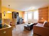 Das offene Wohnzimmer ist gemütlich mit Couchgarnitur und Essplatz für 4 Personen eingerichtet. Für Unterhaltung sorgen Kabel-TV, Radio und DVD-Player. Vom Wohnbereich führt ein direkter Zugang auf Ihre möblierte Terrasse zur Seeseite. Die kleine Küchenzeile ist in den Wohnbereich integriert und umfasst Ausstattungsmerkmale wie 4-Platten-Ceranfeld, Kaffeemaschine, Toaster usw.. Das separate Schlafzimmer ist mit komfortablem Doppelbett (ca. 180x200 cm) möbliert. Das Badezimmer ist hell und modern und verfügt über eine geräumige Eckdusche, beleuchteten Spiegelschrank, Waschbecken und WC.