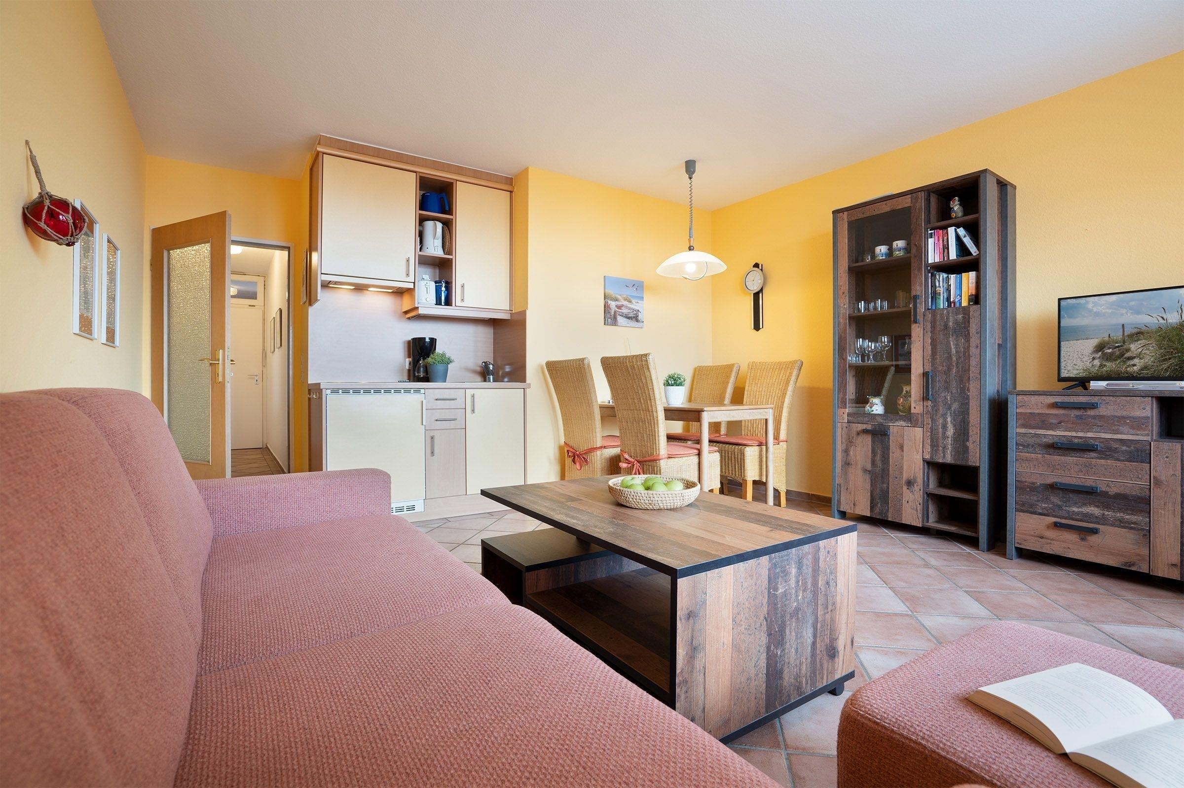 2-Zimmer-Ferienwohnung unweit des Sandstrandes in Kellenhusen im Haus Seeblick mit einer Wohnfläche von ca. 39 m² und Terrasse für 2 Personen.
