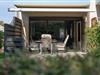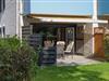 Die an den Wohnbereich angrenzende Terrasse ist mit Gartentisch und Bestuhlung ausgestattet.