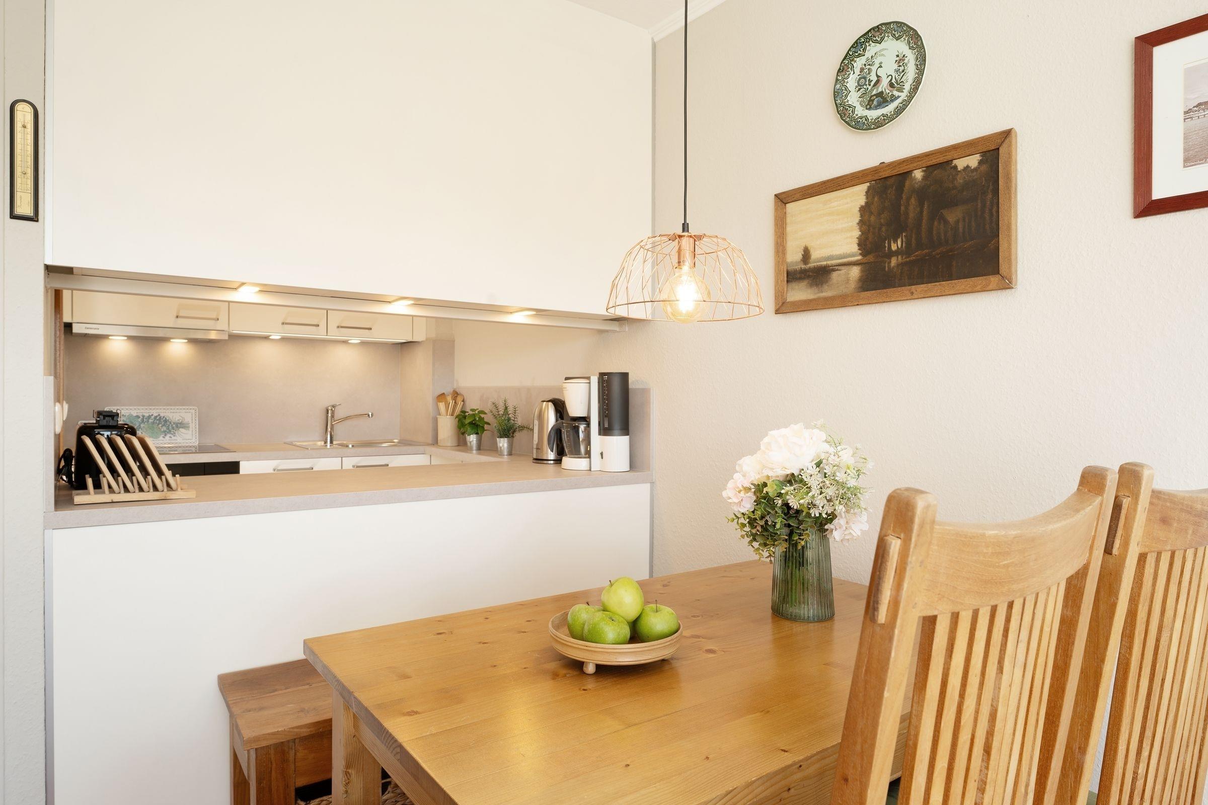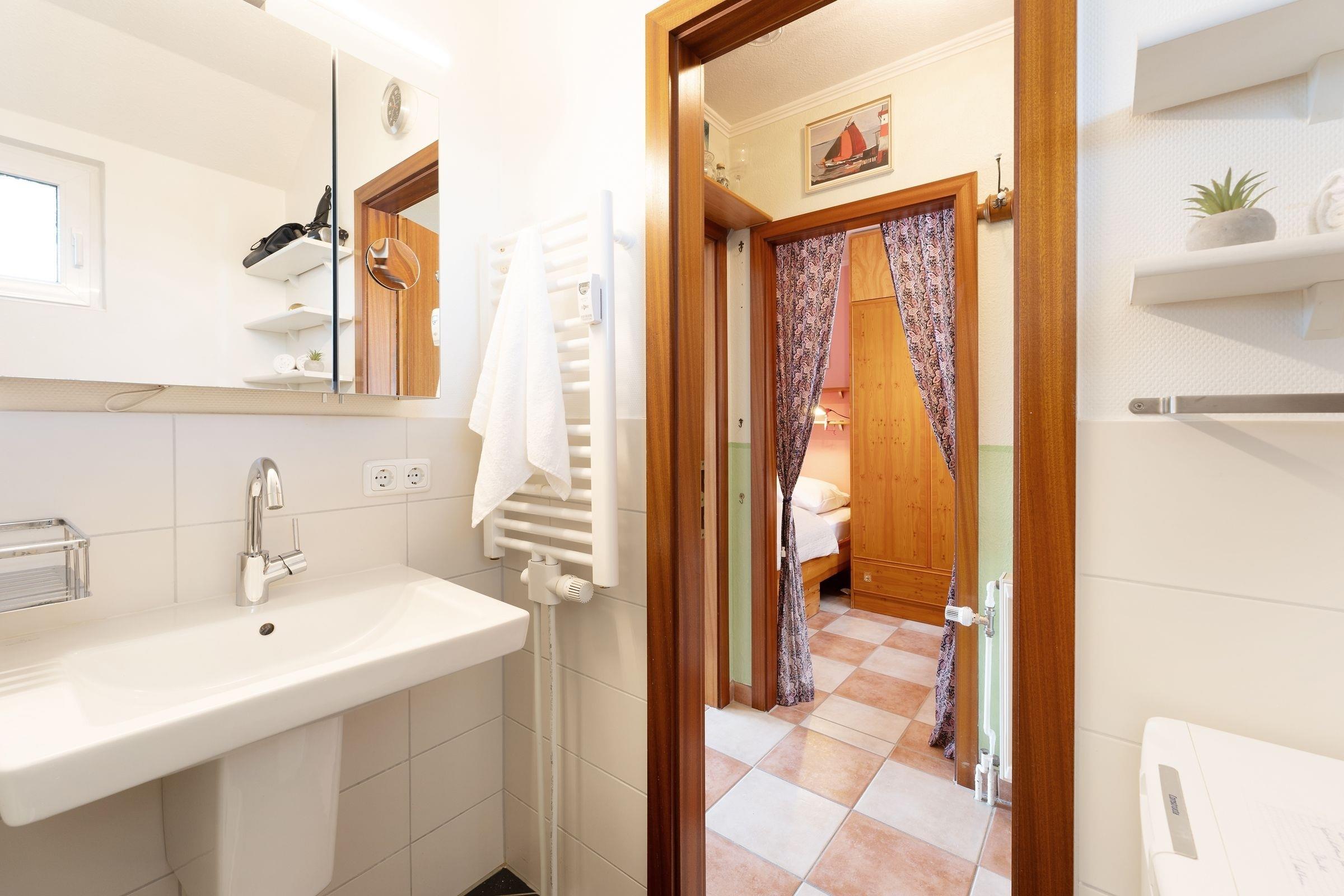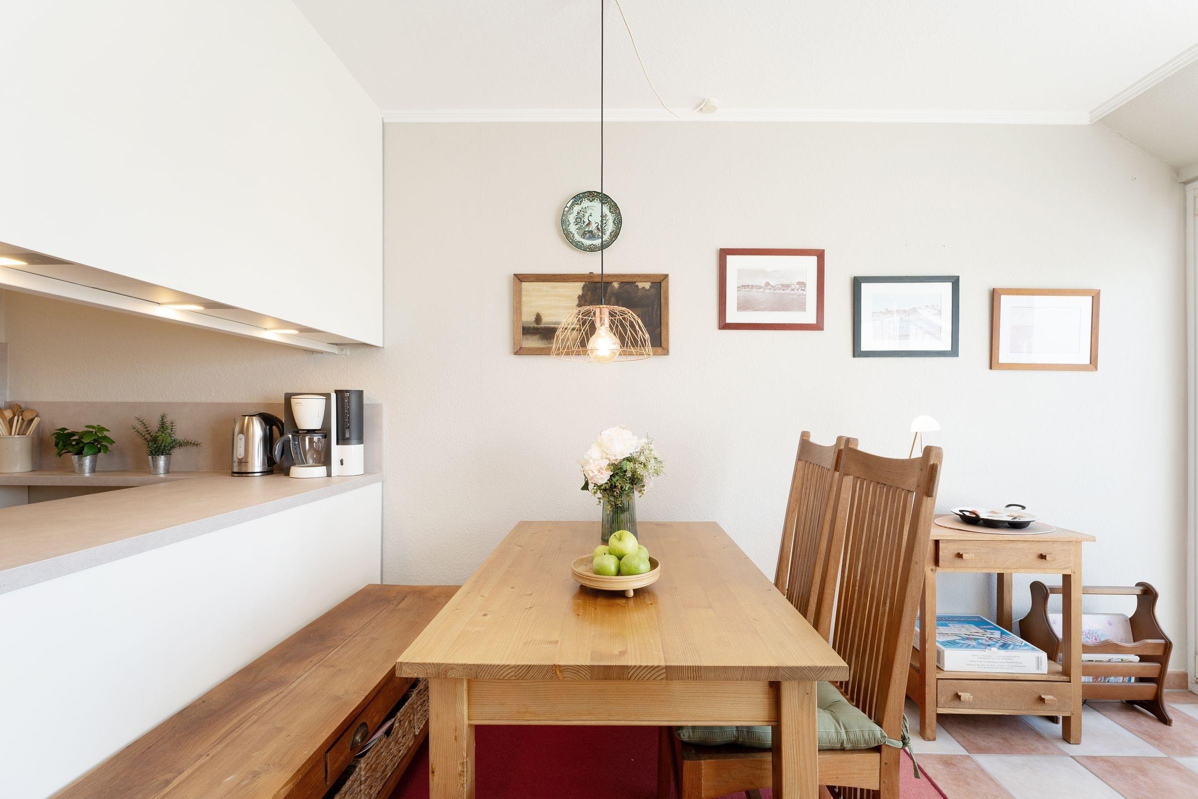 Ein lichtdurchfluteter Wohn- und Essbereich empfängt Sie in diesem Feriendomizil zwischen Strand und Wald. Der gemütliche Wohnzimmerbereich lädt mit einer komfortablen Sofaecke zum Entspannen ein und bietet Unterhaltung durch einen TV sowie ein Radio. Diese Ferienwohnung besticht durch einen sonnigen Balkon, der ideal ist, um die warmen Sonnenstrahlen zu genießen und dabei die Seele baumeln zu lassen. In der im Wohnbereich integrierten Küche mit 4-Platten-Herd, Backofen, Mikrowelle, Kaffeemaschine, Toaster u.v.m. bleiben keine Wünsche offen. Über den Flur erreichen Sie das separate Schlafzimmer mit zwei getrennt stehenden Betten (je 90x200 cm). Das moderne Duschbad mit Waschmaschine komplettiert die Ausstattung dieser Ferienwohnung.