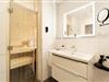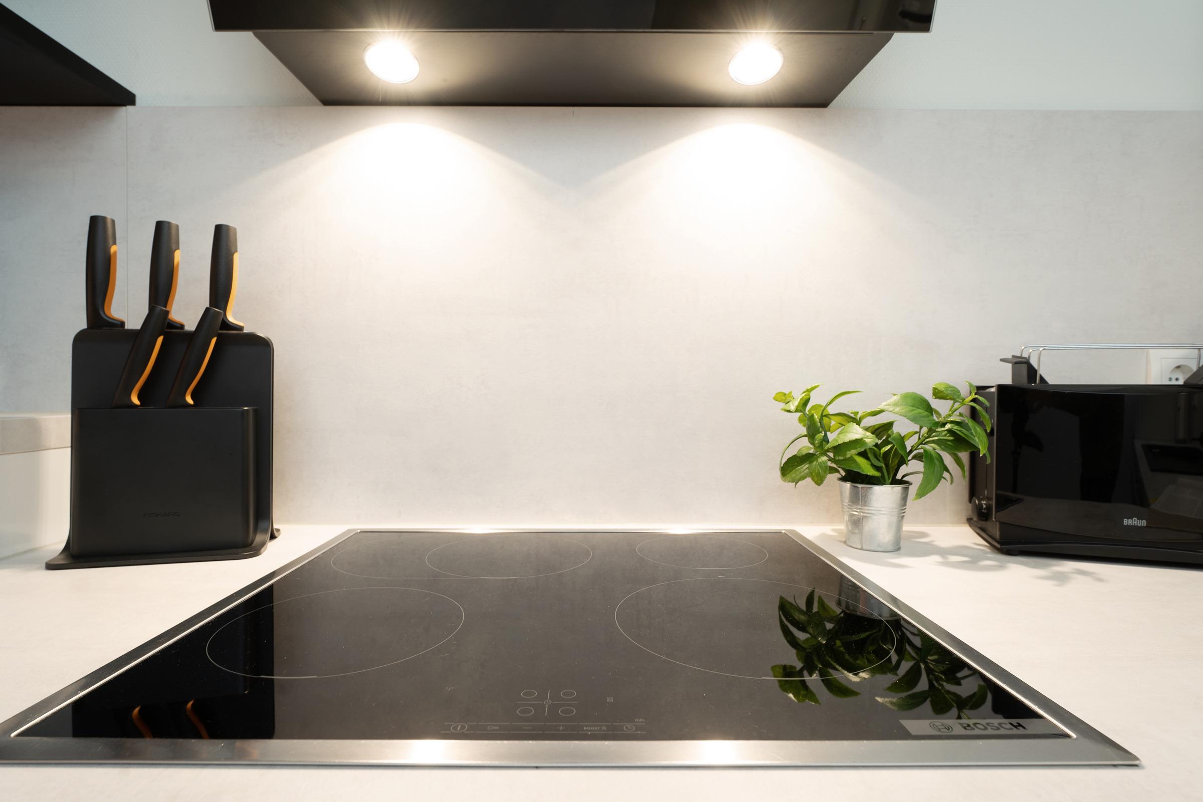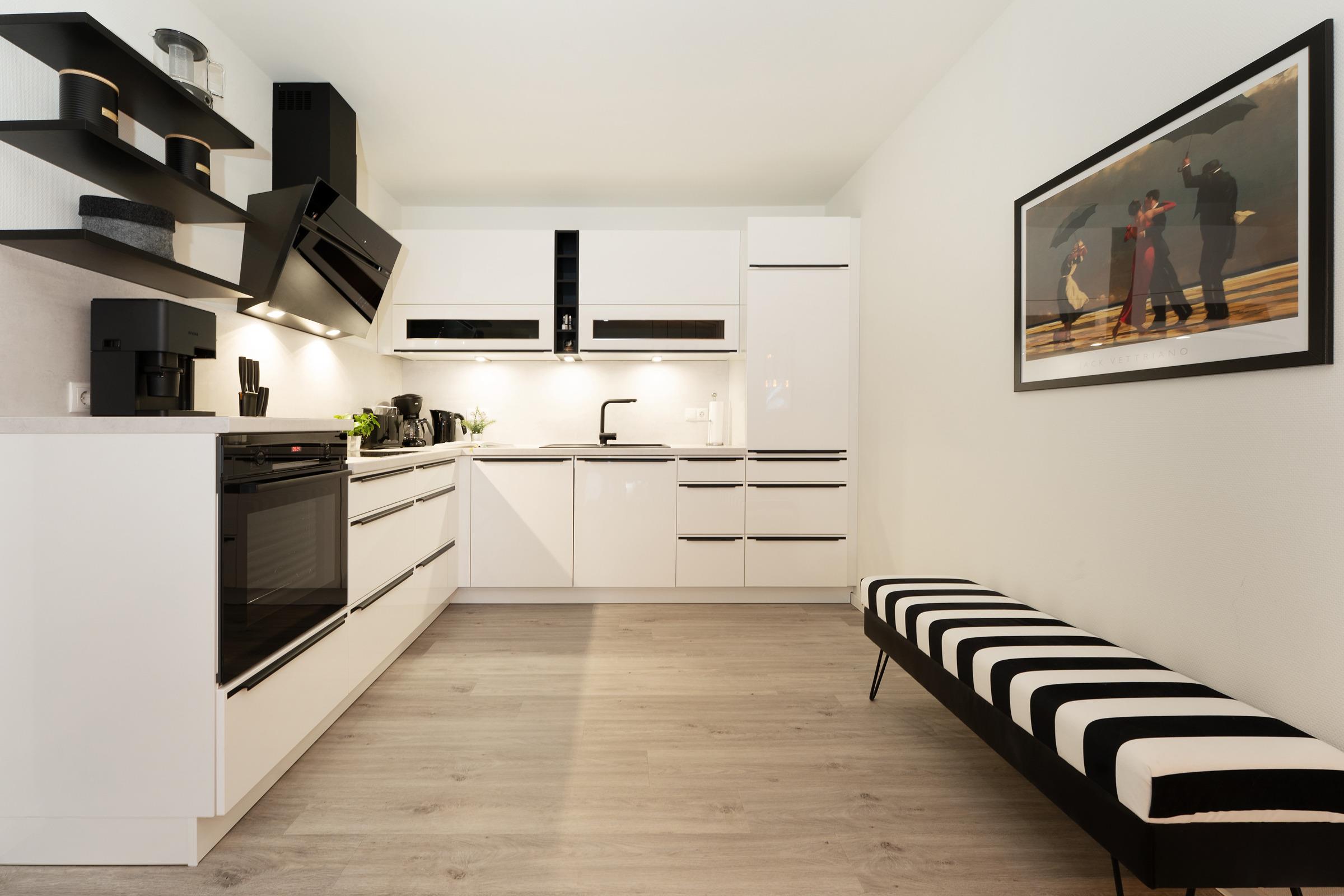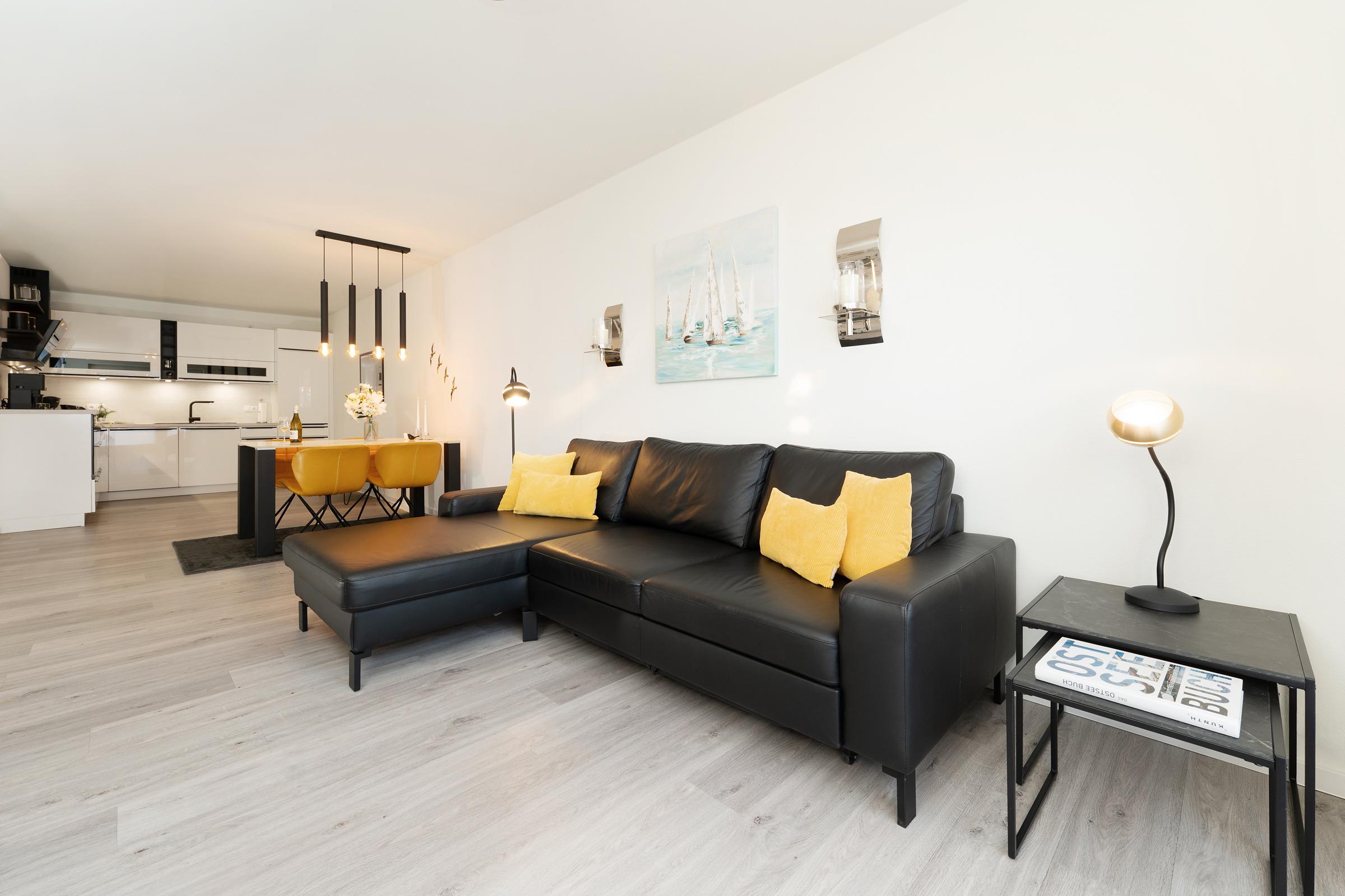 Diese moderne Ferienwohnung im 1. Obergeschoss besticht durch ihre helle und freundliche Einrichtung sowie die komfortable Ausstattung. Der offene Wohnbereich lädt mit einer gemütlichen Sofaecke, Flachbild-TV und Zugang zum sonnigen Balkon ein. Hier genießen Sie den Blick nach Süden und können wunderbar entspannen. Für besonders heiße Tage ist eine Markise vorhanden. Die angrenzende Küche ist voll ausgestattet und verfügt über Backofen, Induktionskochfeld, Geschirrspülmaschine, Kühlschrank mit Gefrierfach, Kaffeemaschine und Wasserkocher – ideal, um Ihre Lieblingsgerichte auch im Urlaub zuzubereiten. Der Essbereich bietet ausreichend Platz für gemeinsame Mahlzeiten. Im Schlafzimmer sorgt ein komfortables Doppelbett für erholsame Nächte. Das moderne Badezimmer ist mit Dusche, WC und Handtuchheizkörper ausgestattet. Als besonderes Highlight steht Ihnen hier zudem eine Sauna zur Eigennutzung zur Verfügung.