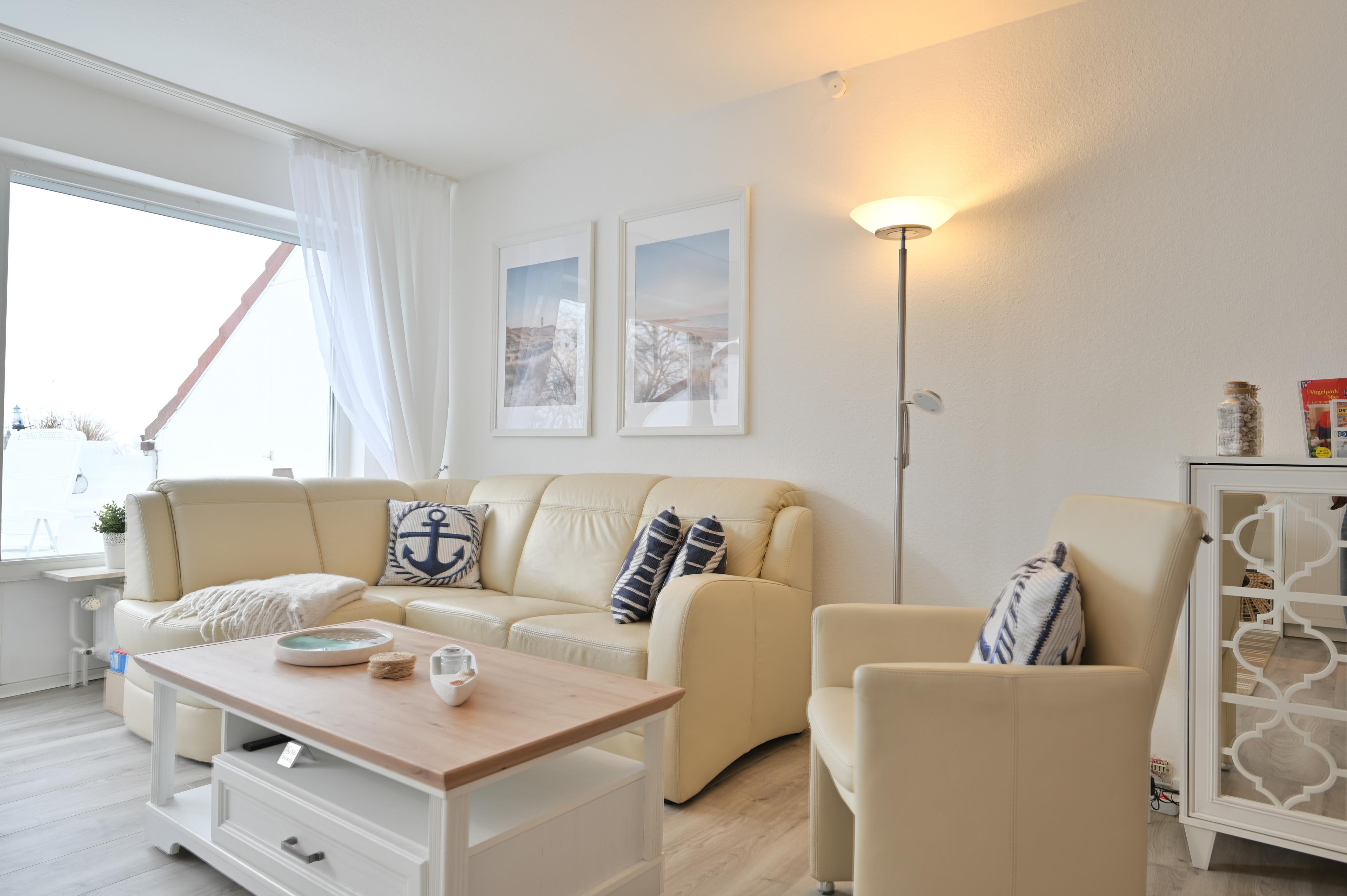 Im schönen Kellenhusen erwartet Sie diese charmante 2 1/2-Zimmer-Ferienwohnung mit einer Wohnfläche von 61 m² über 2 Ebenen im 2. Stock mit Süd-Balkon/Loggia.