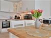 Die neue Einbauküche ist im Wohnzimmer integriert und ausgestattet mit 4-Platten- Ceranfeld, Backofen, Geschirrspüler, Kaffeemaschine, Toaster, Mikrowelle etc., sodass Sie sich sämtliche Speisen nach Herzenslust zubereiten können und auch einer Selbstversorgung nichts im Wege steht.