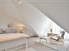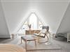 Einen weiteren Rückzugsort bietet das Studio-Schlafzimmer im Dachgeschoss, ob Sie sich im Schaukelstuhl mit Fußhocker vor dem bodentiefen Dreiecksfenster ausruhen möchten oder ein gutes Buch lesen - hier fängt Ihre Auszeit an. Das große Bett (2 x 90x200 cm) mit ergonomischen 7-Zonen Lattenrosten bietet Ihnen zudem einen erholsamen und gesunden Schlaf.