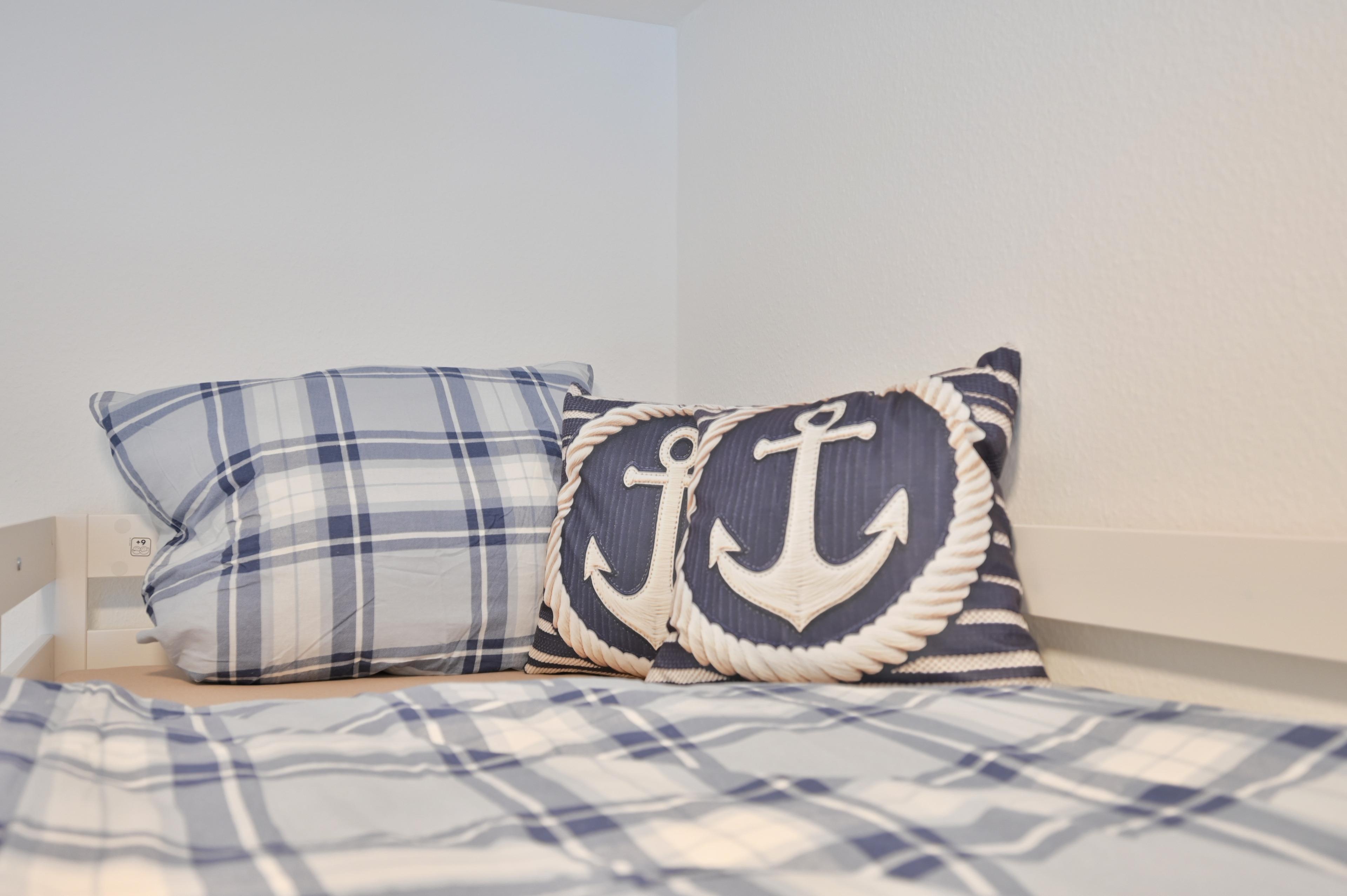 Das Duschbad im maritimen Stil ist innenliegend, lässt Vorfreude auf "Meer" entfachen und macht Sie frisch für den nächsten Strandtag ... die Ostsee ist nur rund 350 Meter entfernt.