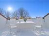 Der möblierte Balkon mit Südausrichtung, eingebettet in eine Wiese mit altem Baumbestand, lädt Sie auch noch am Abend zum Verweilen ein. Hier lassen sich bei einem guten Glas Wein die letzten Sonnenstrahlen einfangen und das Abendrot der untergehenden Sonne in vollen Zügen genießen.
