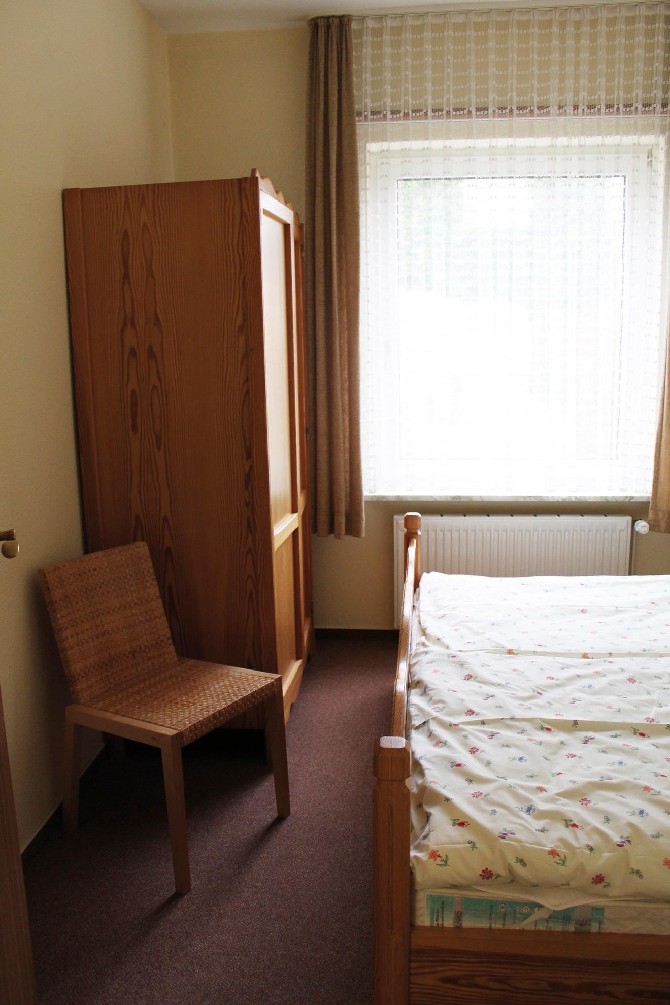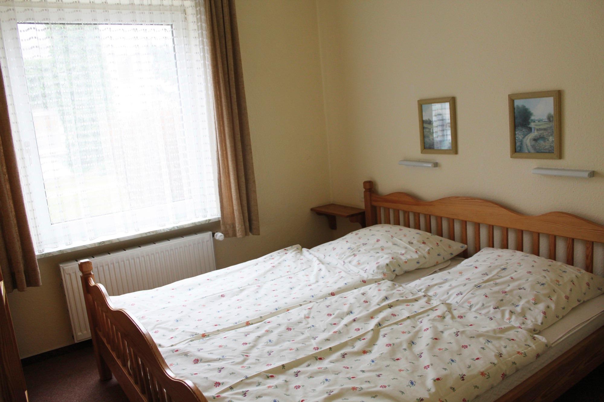 Ferienwohnung, 43 qm, im Erdgeschoß mit Terrasse zum Garten. 1 Wohnraum mit Esstisch, Couchgarnitur und TV. 1 Schlafraum mit Doppelbett, 1 Kinderzimmer mit Etagenbett. Neu renoviertes Bad mit Dusche und WC. Küche mit Geschirrspülmaschine und Backofen.