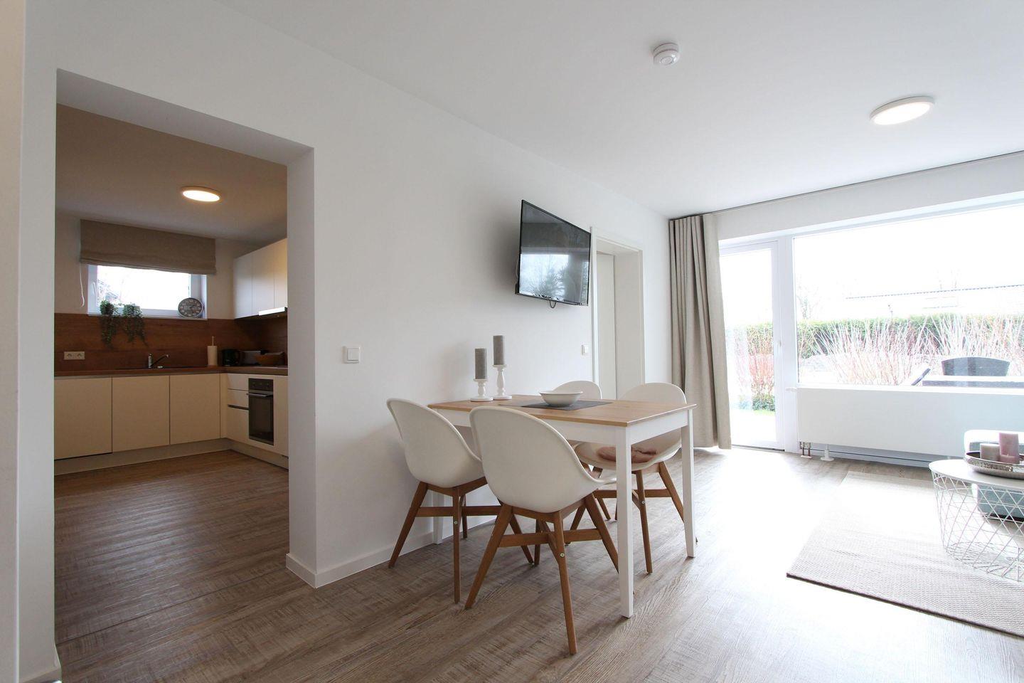 Moderne Ferienwohnung Meerzeit EG in Kellenhusen mit Sauna, Terrasse und Garten, nahe Sandstrand und Einkaufsmöglichkeiten.