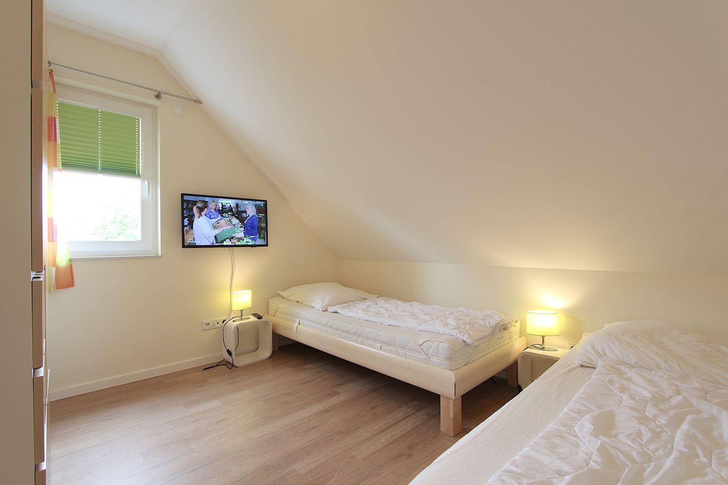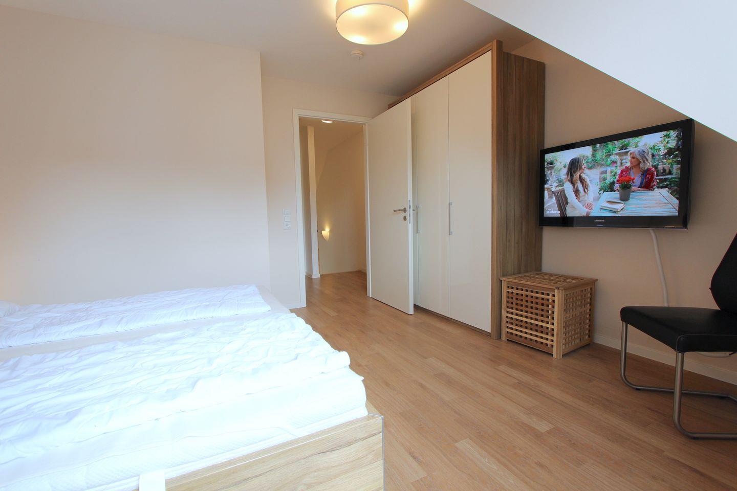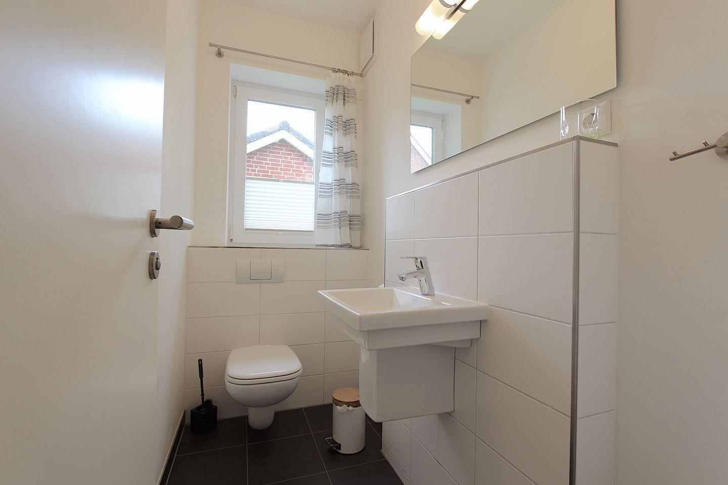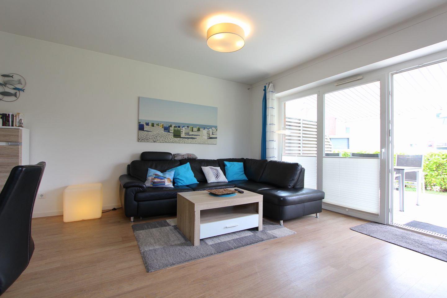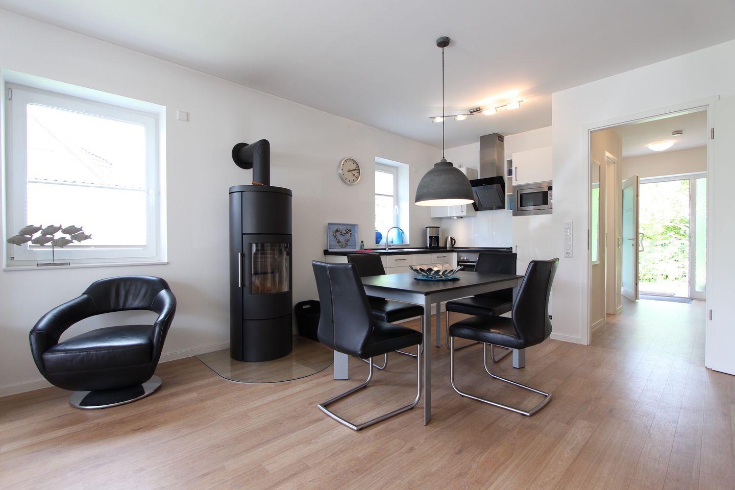 Stilvolles Reihenendhaus in zentraler Lage - Das Erdgeschoss bietet Ihnen einen modernen Wohn- und Essbereich mit integriertem Küchenbereich mit Backofen, 4-Platten-Ceranfeld, Mikrowelle, Geschirrspüler, Kühlschrank, Kaffeemaschine, Toaster etc. Zur weiteren Ausstattung gehören ein Flachbild-TV/DVD-/Blue-ray-Player/Soundbar. Der Kaminofen rundet das Wohlfühlpaket ab. WLAN steht Ihnen kostenfrei zur Verfügung. Die Terrasse und der Garten sind nach Süd-Westen ausgerichtet und bieten nach einem Strandtag noch sonnige Stunden bis in den Abend. Ein geräumiger Flur mit Garderobe, ein Gäste-WC sowie ein Abstellraum mit Waschmaschine stehen zur Verfügung. Im Obergeschoss sind die 2 Schlafzimmer und ein Duschbad angeordnet. Das größere Schlafzimmer ist mit einen Doppelbett (2 Matratzen 0.90 x 2.00 m) und einem TV ausgestattet. Das kleinere Schlafzimmer ist mit 2 getrennt stehenden Betten (0.90 x 2.00 m) und TV eingerichtet. Ausreichend Schrankfläche ist in beiden Schlafzimmern vorhanden. Bei Bedarf können Sie Wäschepakete für Ihren Aufenthalt gegen Gebühr buchen.