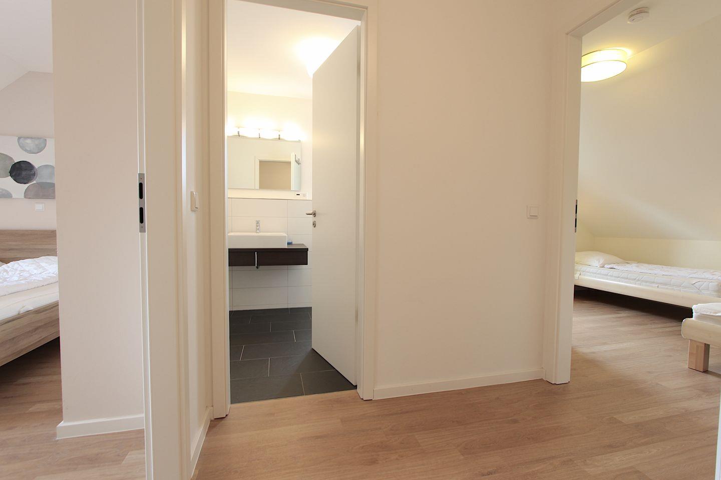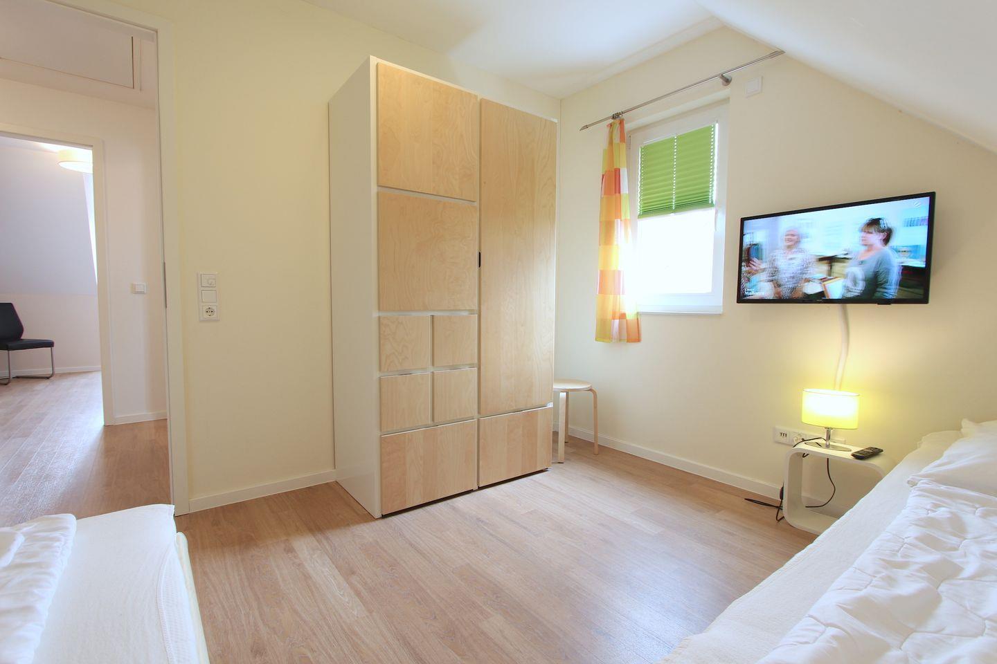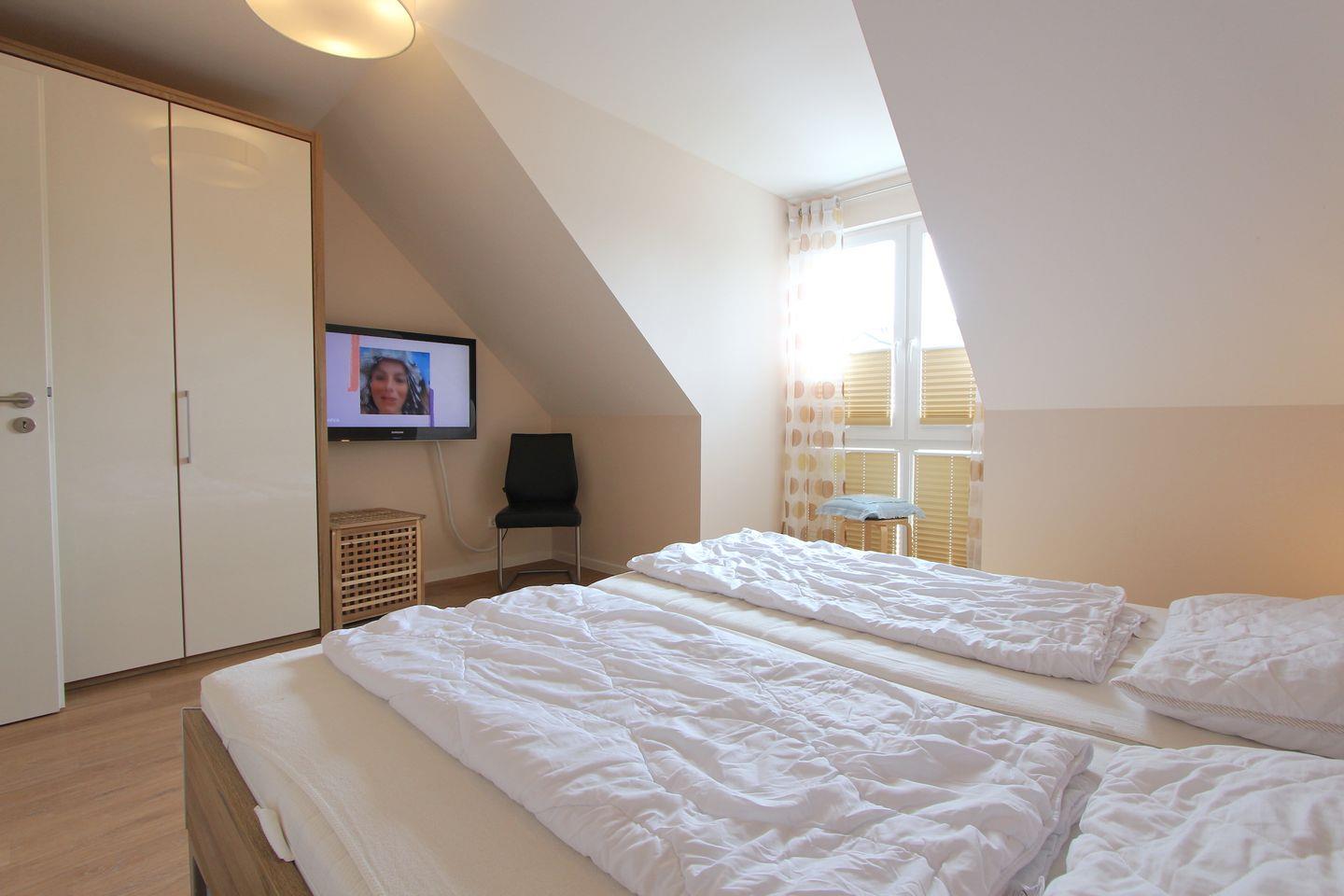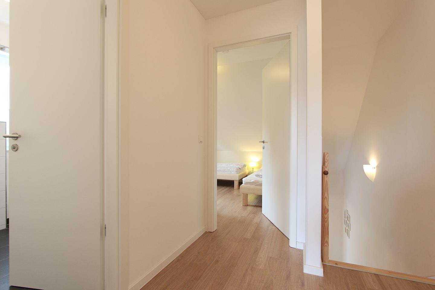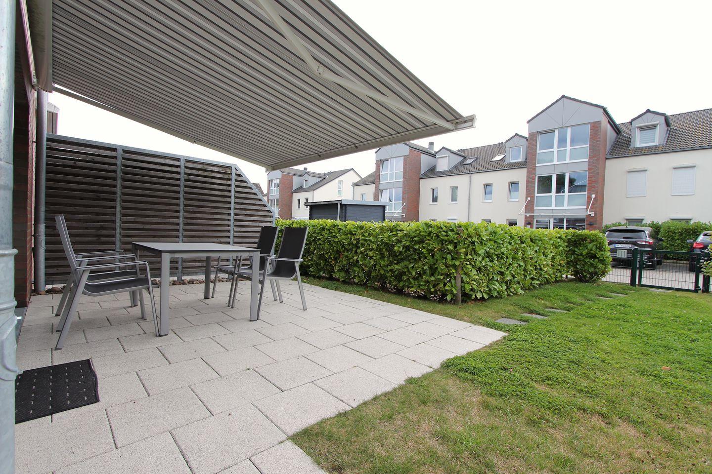 Stilvolles Reihenendhaus in zentraler Lage - Das Erdgeschoss bietet Ihnen einen modernen Wohn- und Essbereich mit integriertem Küchenbereich mit Backofen, 4-Platten-Ceranfeld, Mikrowelle, Geschirrspüler, Kühlschrank, Kaffeemaschine, Toaster etc. Zur weiteren Ausstattung gehören ein Flachbild-TV/DVD-/Blue-ray-Player/Soundbar. Der Kaminofen rundet das Wohlfühlpaket ab. WLAN steht Ihnen kostenfrei zur Verfügung. Die Terrasse und der Garten sind nach Süd-Westen ausgerichtet und bieten nach einem Strandtag noch sonnige Stunden bis in den Abend. Ein geräumiger Flur mit Garderobe, ein Gäste-WC sowie ein Abstellraum mit Waschmaschine stehen zur Verfügung. Im Obergeschoss sind die 2 Schlafzimmer und ein Duschbad angeordnet. Das größere Schlafzimmer ist mit einen Doppelbett (2 Matratzen 0.90 x 2.00 m) und einem TV ausgestattet. Das kleinere Schlafzimmer ist mit 2 getrennt stehenden Betten (0.90 x 2.00 m) und TV eingerichtet. Ausreichend Schrankfläche ist in beiden Schlafzimmern vorhanden. Bei Bedarf können Sie Wäschepakete für Ihren Aufenthalt gegen Gebühr buchen.
