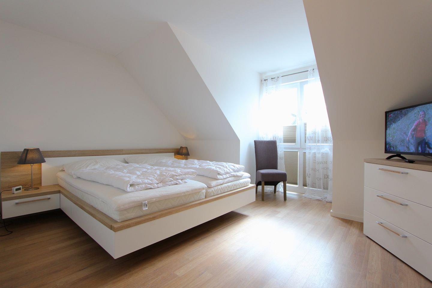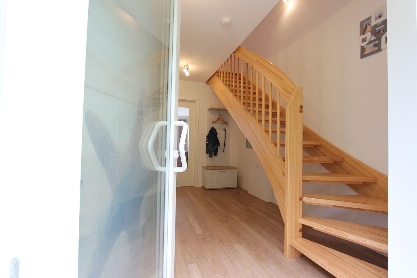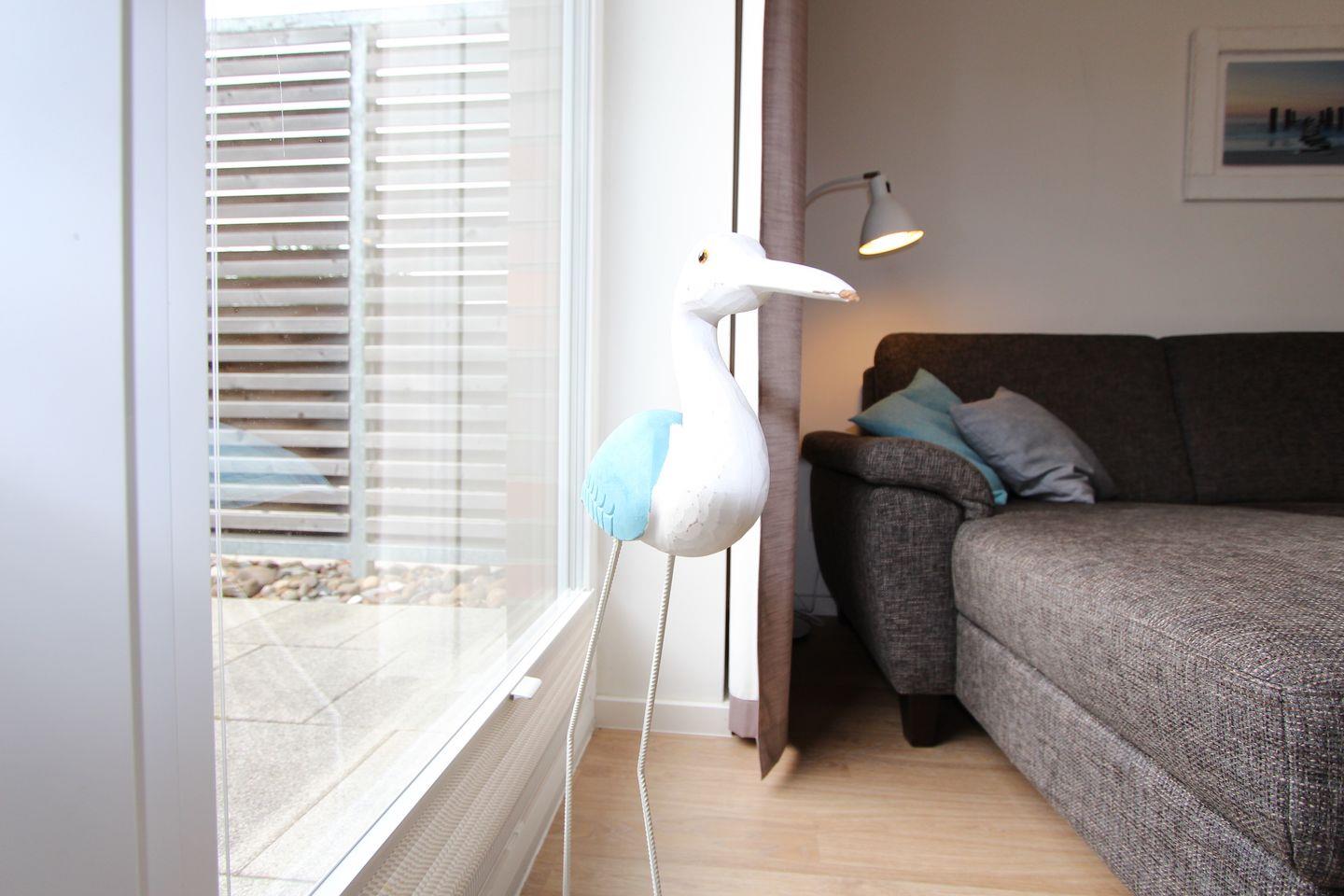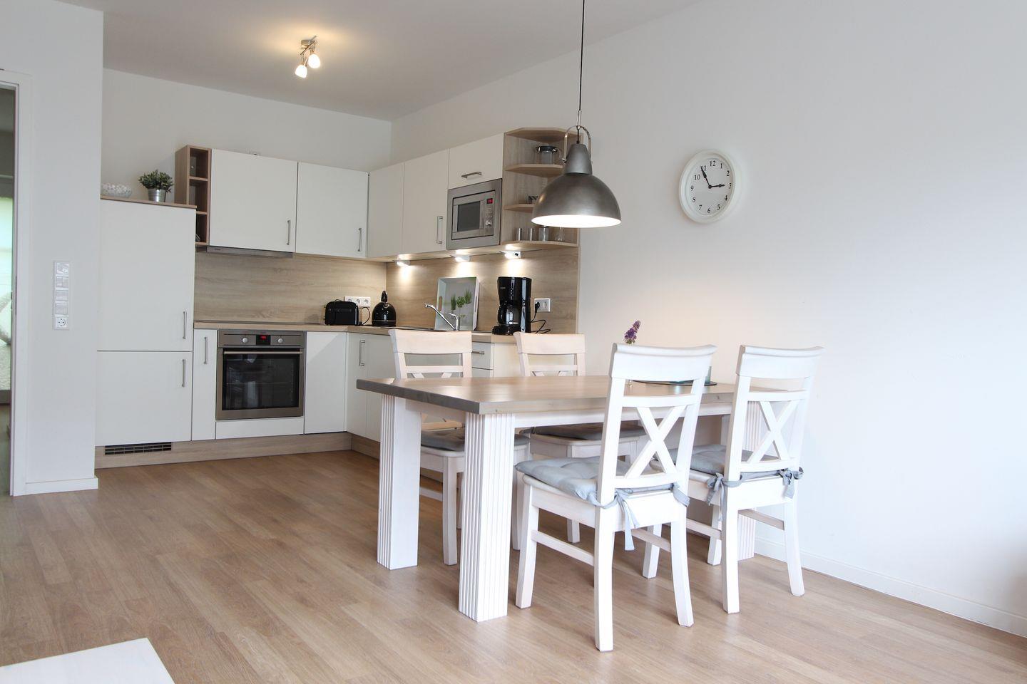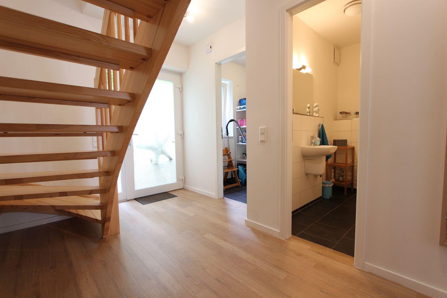 Reihenmittelhaus in zentraler Lage. Das Erdgeschoss bietet Ihnen einen modernen Wohn- und Essbereich mit integriertem Küchenbereich sowie Backofen, 4-Platten-Induktionsfeld, Mikrowelle, Geschirrspüler, Kühlschrank mit separatem Gefrierschrank (2 gr. Schubladen), Kaffeemaschine, Toaster, Wasserkocher etc. Zur weiteren Ausstattung gehören ein Flachbild-TV, DVD-Player und Stereoanlage. WLAN steht Ihnen kostenfrei zur Verfügung. Die Terrasse und der Garten sind nach Süd-Westen ausgerichtet und bieten nach einem Strandtag noch sonnige Stunden bis in den Abend. Sollten Sie einmal Schutz vor der Sonne suchen, steht Ihnen eine elektrische Markise zur Verfügung. Ein geräumiger Flur mit Garderobe, ein Gäste-WC sowie ein Abstellraum mit Waschmaschine stehen zur Verfügung. Im Obergeschoss sind die 2 Schlafzimmer und ein Duschbad angeordnet. Das größere Schlafzimmer ist mit einen Doppelbett (2 Matratzen 0.90 x 2.00 m) und einem TV ausgestattet. Das kleinere Schlafzimmer ist mit 2 getrennt stehenden Betten (0.90 x 2.00 m) eingerichtet. Ausreichend Schrankfläche ist in beiden Schlafzimmern vorhanden. Bei Bedarf können Sie Wäschepakete für Ihren Aufenthalt gegen Gebühr buchen.