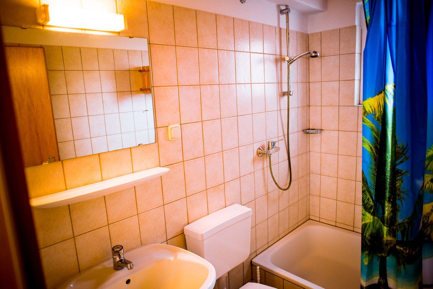 Diese Wohnung zeichnet sich durch ein gemütliches Wohnzimmer mit einem praktischen Schrankbett für eine Person, ein komfortables Schlafzimmer mit einem Doppelbett (160 cm), eine gut ausgestattete Küchenzeile sowie ein Duschbad mit Duschwanne aus.
