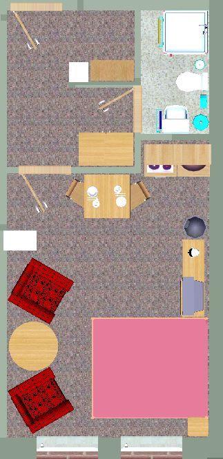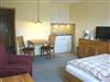 Es gibt eine kleine Kochnische mit 2 Platten (Ceranfeld), allerdings keinen Backofen und auch keine Mikrowelle.