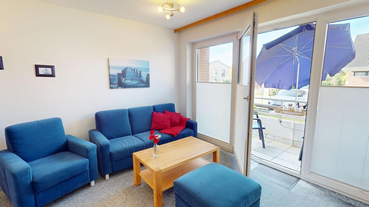 Diese helle, 53 m² große Ferienwohnung "Meer" liegt im Hochparterre mit einem herrlichen Süd-Balkon und ist für 4 Personen ausgelegt. Bis zum Strand sind es nur 200 m zu Fuß!
