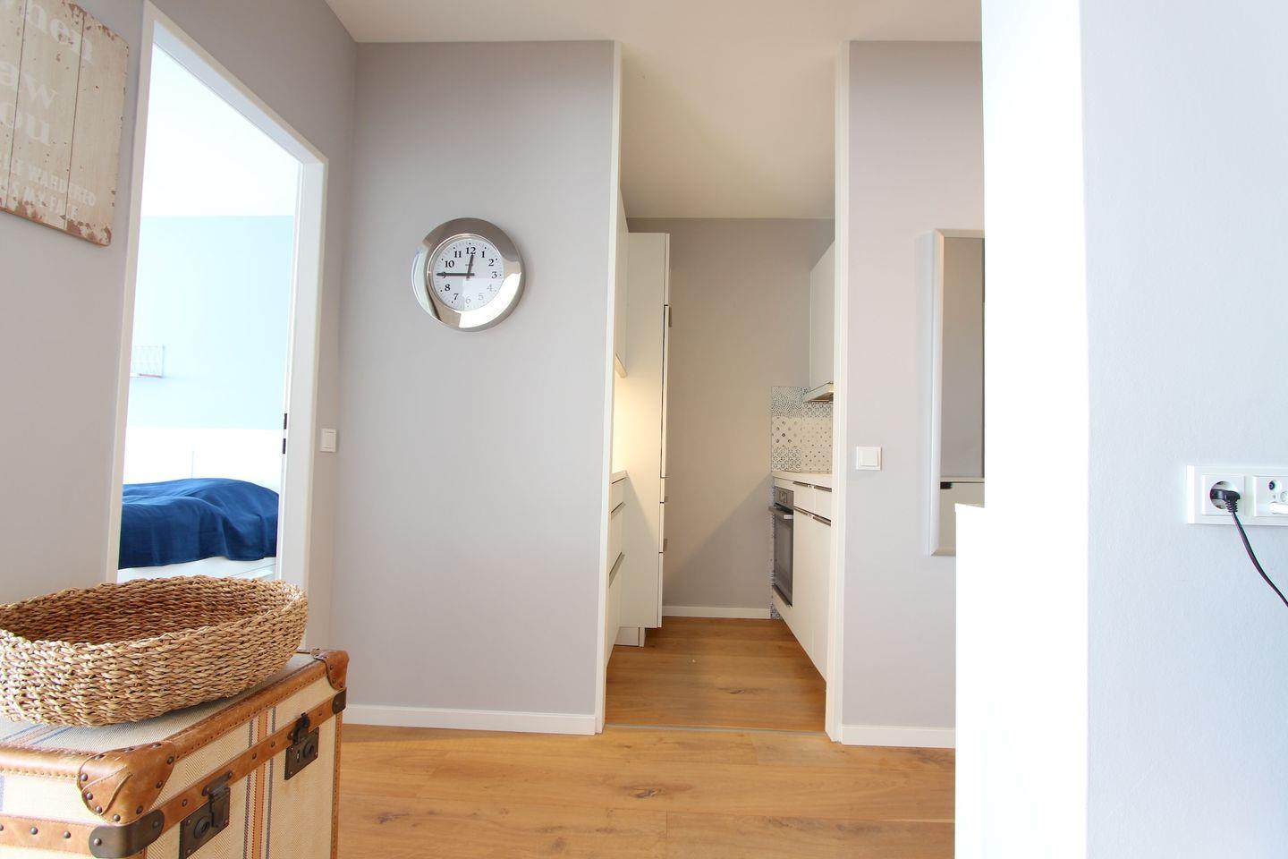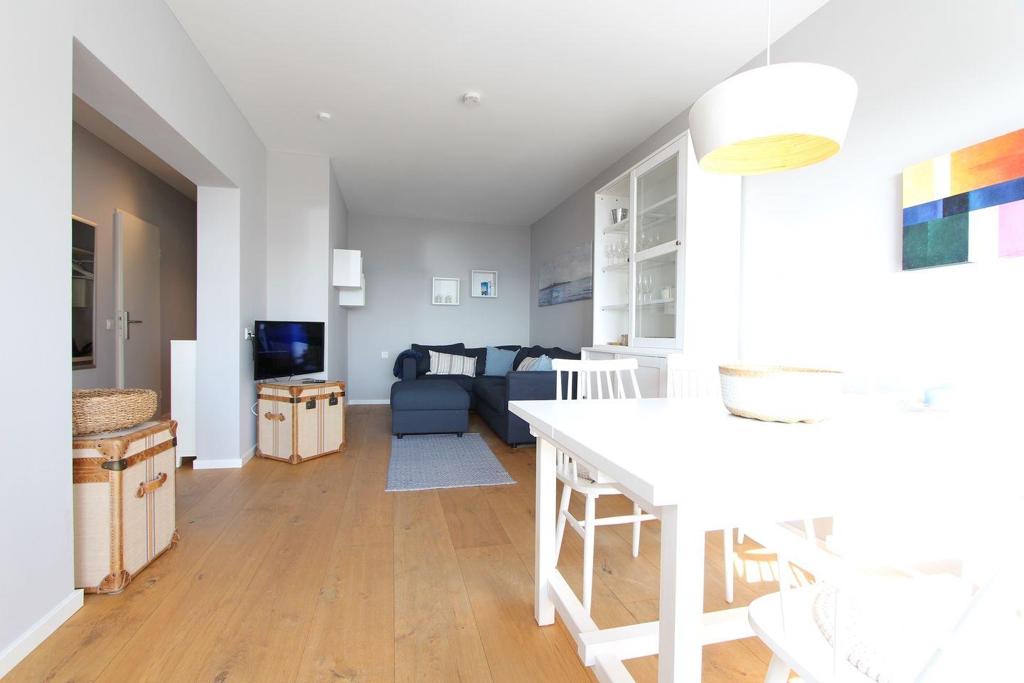 Das modern eingerichtete Apartment Haus Meeresblick 91 Leuchtturmheimat 3 im 8. Stock bietet auf 44 m² ein Schlafzimmer, ein Wohnzimmer mit offener Küche, einen überdachten Balkon sowie WLAN. Zu den Annehmlichkeiten zählen Geschirrspüler, Waschmaschine, Trockner, Induktionsherd und 1 Parkplatz. Strand und Meer sind nur 200 m entfernt. Haustiere sind erlaubt.