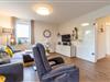 Der helle Wohnbereich überzeugt mit harmonischem Farbkonzept und einer gemütlichen Wohnlandschaft, die auch als zusätzliche Schlafmöglichkeit genutzt werden kann. Die offene Küche ist voll ausgestattet und lädt zu gemeinsamen Kochabenden ein. Der überdachte Balkon ist ein perfekter Platz für eine Tasse Kaffee am Morgen oder entspannte Abende.