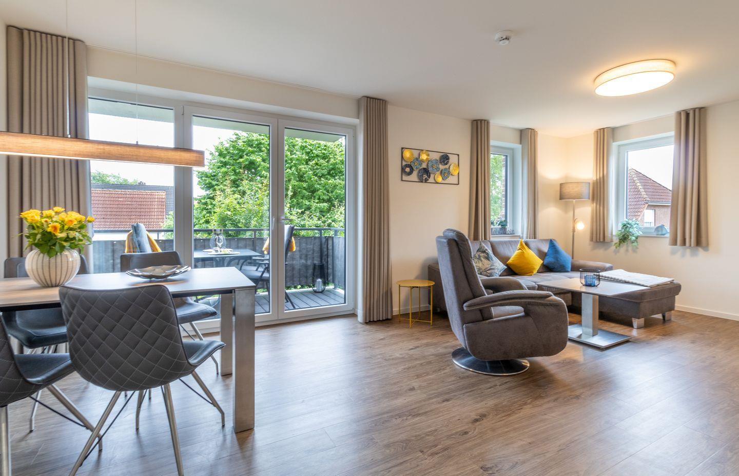 Moderne Ferienwohnung in Kellenhusen mit Sauna, Balkon und Strandnähe für entspannte Familien- und Aktivurlaube.