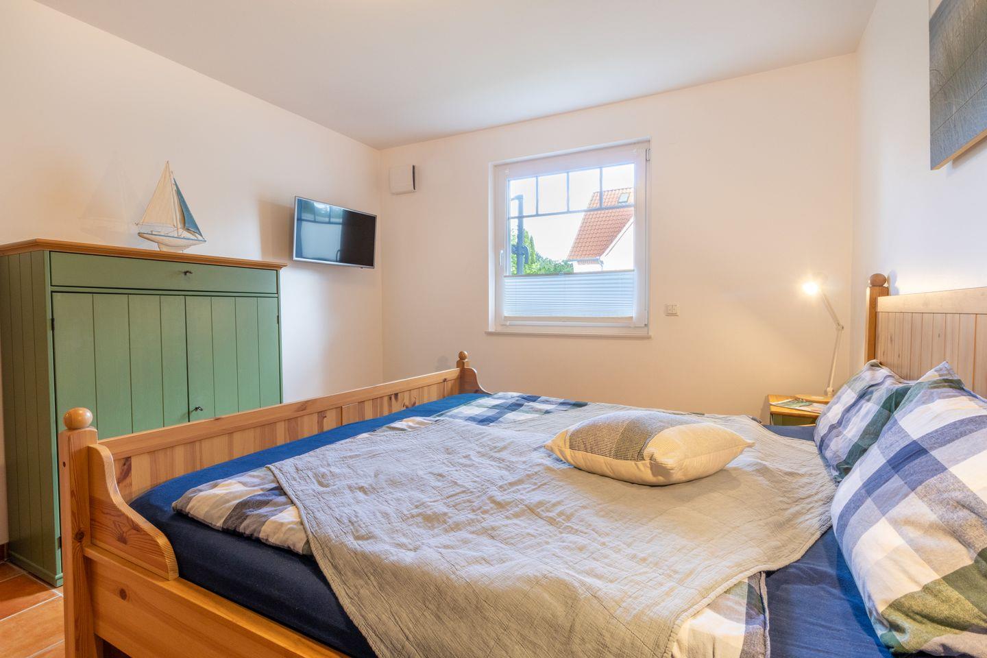 Das Schlafzimmer bietet dir ein komfortables Doppelbett und einen TV für entspannte Abende. Außenrollläden sorgen für ungestörte Nächte und erholsamen Schlaf.