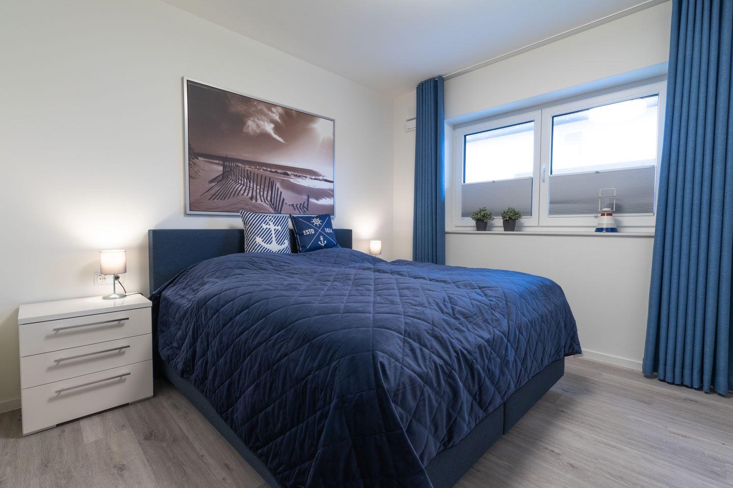 Zwei Schlafzimmer mit hochwertigen Boxspringbetten bieten dir beste Voraussetzungen für erholsame Nächte. Verdunkelungsplissees sorgen für angenehme Schlafbedingungen – auch am Tag. Ruhige Rückzugsorte mit Wohlfühlcharakter.