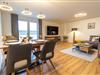 Der offene Wohn- und Essbereich ist großzügig geschnitten. Bequeme Sitzmöbel und Smart-TV mit MagentaTV stehen für entspannte Abende bereit. Große Fenster schaffen viel Licht. Du gehst direkt auf die Dachterrasse und genießt den weiten Blick über Kellenhusen. Die offene Küche ist separat angeordnet und vollständig ausgestattet. Backofen, Geschirrspüler und hochwertige Geräte unterstützen dich beim Kochen. Am Esstisch sitzen alle gemeinsam.