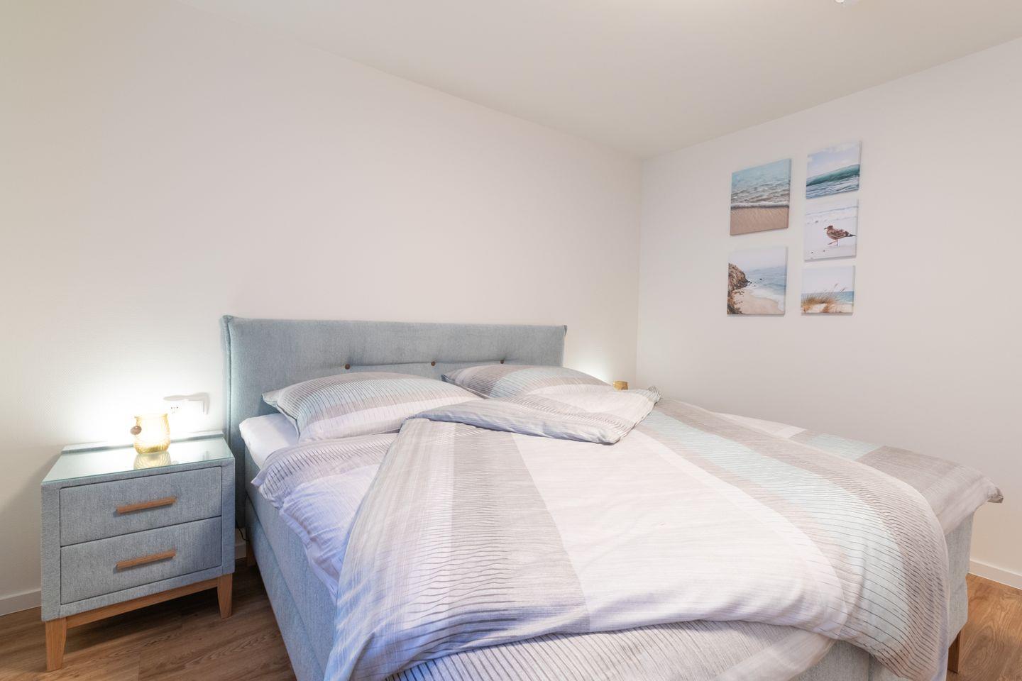 Zwei Schlafzimmer bieten dir ruhige Rückzugsorte. Beide Räume sind mit Boxspringbetten ausgestattet. Verdunkelungsplissees sorgen für erholsamen Schlaf. Von beiden Schlafzimmern hast du direkten Zugang zur Dachterrasse. Geräumige Kleiderschränke bieten ausreichend Stauraum.