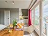 Die Unterkunft zeichnet sich durch ein modernes, offenes Wohnkonzept aus, das einladend und funktional zugleich ist. Das Wohnzimmer ist mit einem komfortablen Sofa und einem Fernseher ausgestattet, damit Sie nach einem erlebnisreichen Tag am Strand gemütliche Abende verbringen können. Der Esstisch lädt dazu ein, gesellige Mahlzeiten zu genießen, die Sie selbst in der voll ausgestatteten offenen Küche zubereiten können. Diese ist unter anderem mit einem Herd, einer Mikrowelle, einem Kühlschrank, Toaster und einer Kaffeemaschine ausgestattet. Hier finden Sie alles, was Sie für die Zubereitung Ihrer Lieblingsgerichte benötigen.