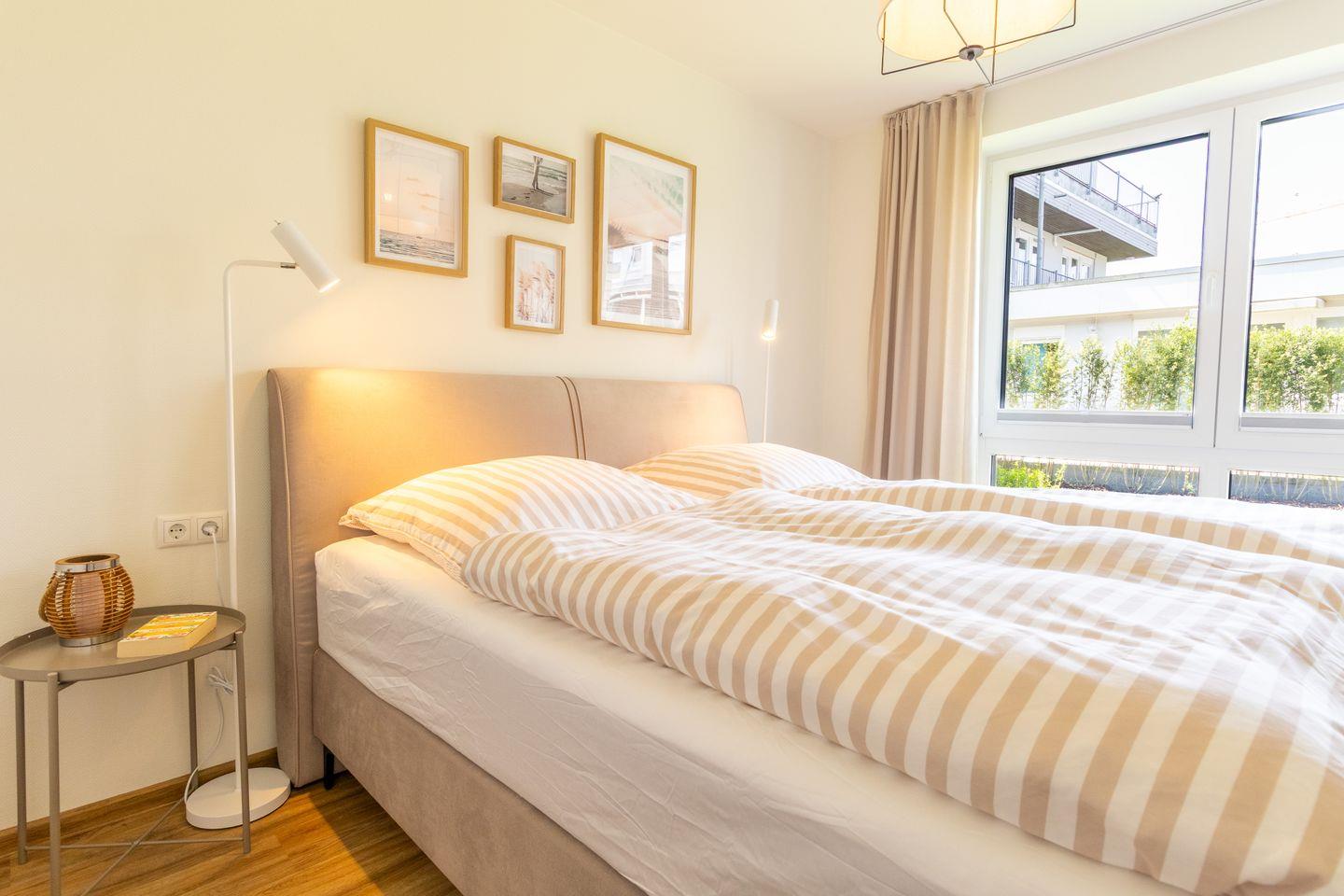 Zwei separate Schlafzimmer mit hochwertigen Betten sorgen für erholsamen Schlaf – ideal für Paare, Familien oder kleine Gruppen. Freu dich auf deine wohlverdiente Auszeit an der Ostsee.