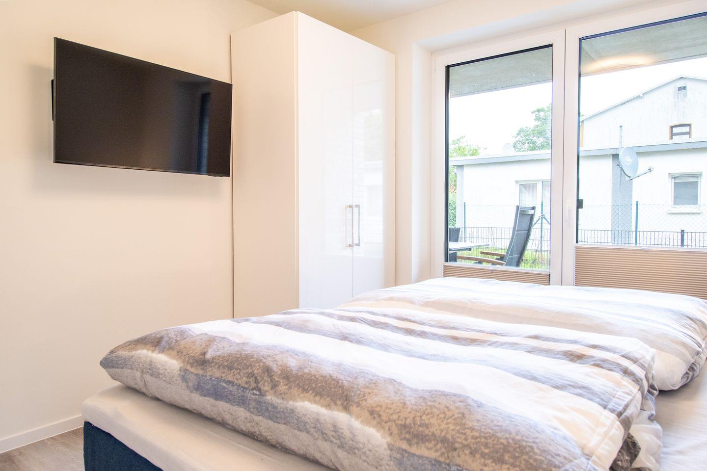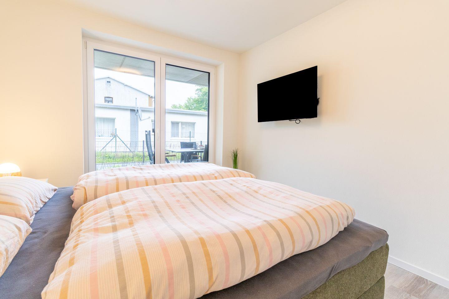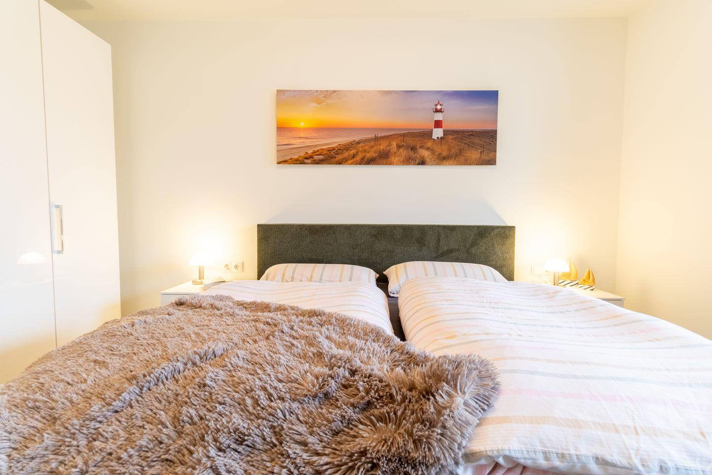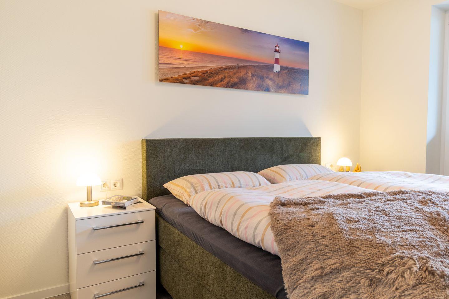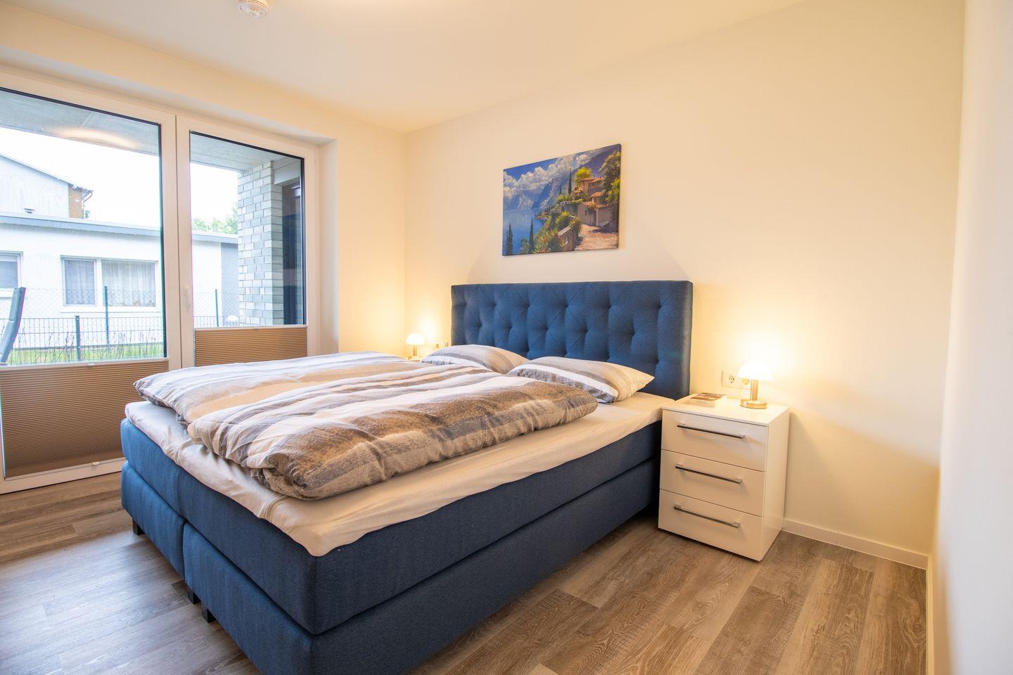 Zwei Schlafzimmer mit hochwertigen Boxspringbetten garantieren erholsamen Schlaf. Die ruhige Lage, viel Platz und eine durchdachte Raumaufteilung machen Ankerplatz 3 besonders komfortabel – auch für Gäste mit Mobilitätseinschränkungen.