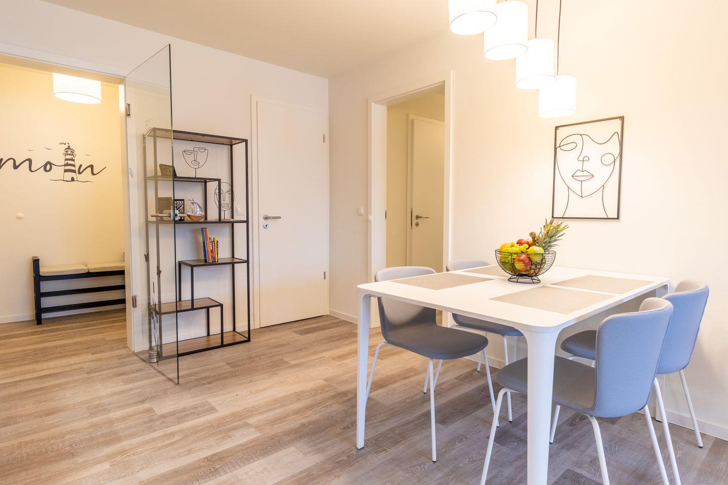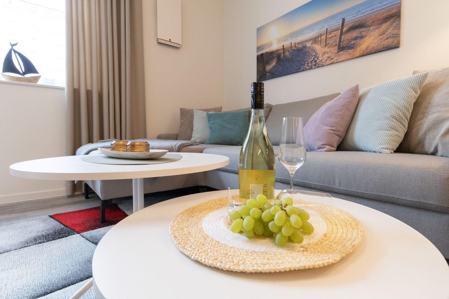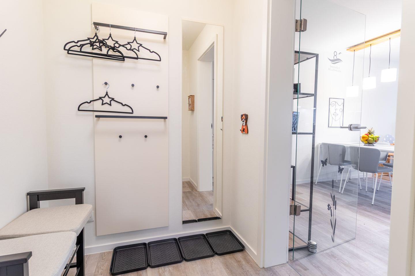 Nur 100?m vom Strand entfernt liegt diese moderne Erdgeschosswohnung mit großer Terrasse, privater Sauna, zwei Schlafzimmern, Fußbodenheizung und barrierearmer Ausstattung. Perfekt für Paare, Familien oder Gäste mit Hund – komfortabel, ruhig und hochwertig.