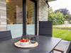 Der helle Wohnbereich ist offen gestaltet, mit bodentiefen Fenstern und direktem Zugang zur überdachten Terrasse. Genieße die frische Ostseeluft beim Frühstück draußen oder beim entspannten Tagesausklang im Grünen. Fußbodenheizung und Wohnraumlüftung mit Wärmerückgewinnung sorgen jederzeit für ein angenehmes Raumklima.