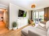 Zwei gemütliche Schlafzimmer mit Smart-TV bieten Platz für bis zu fünf Erwachsene oder vier Erwachsene und zwei Kinder. Ein Bett verfügt über komfortable Überlänge (220?cm) – perfekt für große Gäste.