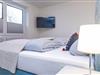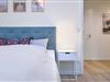 Im Schlafzimmer erwartet dich ein komfortables Boxspringbett (180 × 200 cm). Verdunklungsplissees sorgen für erholsame Nächte, ein eigener Smart-TV für zusätzlichen Komfort. Im Wohnbereich steht außerdem ein Schlafsofa zur Verfügung.