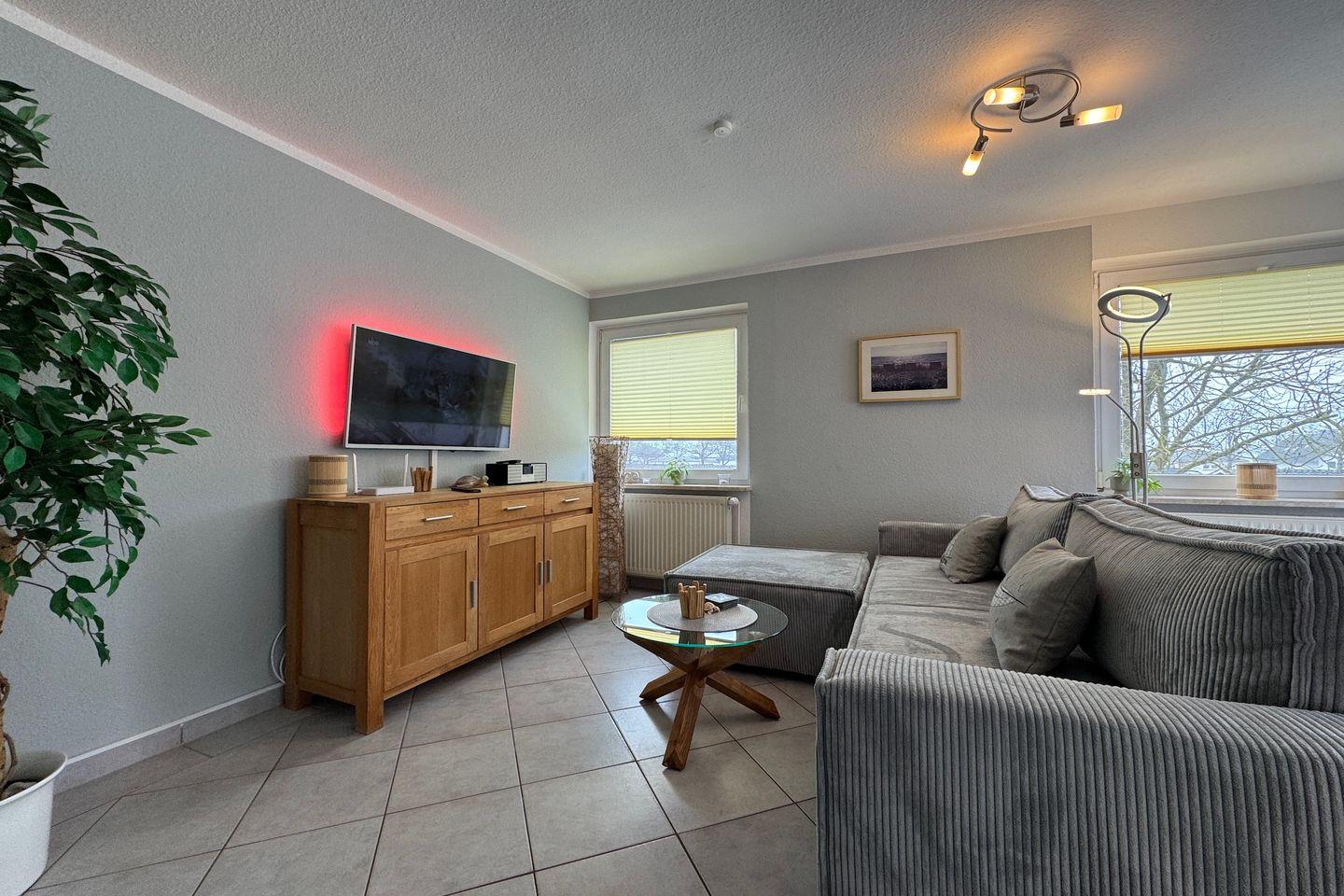 Vom Wohnzimmer aus gelangen Sie auf den Südwest-Balkon, der zu sonnigen Stunden und entspannten Abenden einlädt.