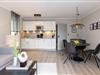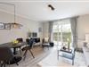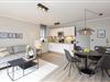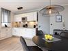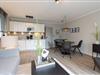 Die Wohnung 5 liegt im Erdgeschoss und ist ca. 45 qm groß. Der Wohnbereich ist offen und hell gestaltet durch eine schöne Fensterfront zum Garten. Integriert im Wohnbereich sind der Essbereich und die Küchenzeile mit Geschirrspülmaschine und Mikrowelle.