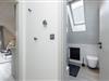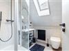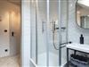 Das Badezimmer ist mit Duschkabine und hellen Fliesen gestaltet.