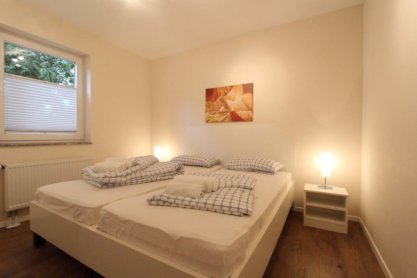Diese außergewöhnlich, schöne, lichtdurchflutete Erdgeschosswohnung ist mit ca. 71 qm bestens ausgelegt für einen Urlaub mit max. 4 Personen. Der äußerst großzügige, moderne und schicke Wohn- und Essbereich besticht mit Charme und Stil. Eine hochwertige Couchecke lädt zum Entspannen ein und die Küche kann mit Geschirrspüler, Mikrowelle, Gefriereinheit im Kühlschrank und Backofen auf Augenhöhe glänzen. Direkt vom Wohnbereich erreicht man über eine große Glastür die sonnige Terrasse mit Süd-West-Lage. Bereits mit Gartenmöbeln und Sonnenliege ausgestattet kann man sich direkt erholen. Das erste Schlafzimmer ist mit einem Doppelbett (2 Matratzen á 0,90x2,00), einem Schrank und einem Fernseher ausgestattet und auch das zweite Zimmer bittet einen gemütlichen Rückzugsort mit zwei Einzelbetten (Matratzen á 0,90x2,00m). Für die ganz kleinen Gäste gibt es ein Kinderreisebett, welches allerdings eine selbstmitgebrachte Matratze benötigt. Im großzügigen, hellen Badezimmer mit Glasduschkabine und Fenster kann ebenfalls die bereitgestellte Waschmaschine genutzt werden. Zur Verdunkelung oder für die Sicherheit können alle Fenster der Wohnung auch mit Rollläden verschlossen werden. Mitgebrachte Fahrräder können im zugehörigen Fahrradabstellraum untergebracht werden. Die ruhig gelegene Ferienwohnung ist prädestiniert für einen erholsamen und entspannten Urlaub und bietet die Ruhe des Waldes und auch den Genuss des Strandes in einem. Innerhalb eines kurzen Spaziergangs ist man in 5 Minuten am schönen Sandstrand vom Ostseebad Kellenhusen. Auch dem Urlaub mit dem Haustier steht generell nichts im Wege, denn nach Rücksprache und gegen Aufpreis sind Haustiere gestattet. Sollte das Reisegepäck so gering wie möglich ausfallen, dann ist ein Wäschepaket für den Aufenthalt in Kellenhusen gegen Gebühr einfach buchbar.