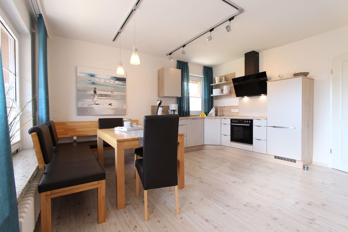 Das Haus Heckenrose bietet mehrere Wohnungen, zum einen diese ca. 50 qm große Erdgeschosswohnung für max. 2 Personen. Der offene Wohnbereich ist sehr geschmackvoll, schick und gemütlich eingerichtet. Auch der schicke Kaminofen ist noch ein Highlight des Raumes. Die sehr schicke und hochwertige Küche ist gemeinsam mit dem Esstisch im Wohnbereich integriert. Das große Ceranfeld, der Geschirrspüler, der Backofen und zusätzlich zu der normalen Kaffeemaschine auch eine Senseo-Maschine runden die schicke Küche ab. Das Schlafzimmer bietet ein hochwertiges Doppelbett (2 Matratzen á 0,90x2,00m). Ebenfalls verfügt die Wohnung über ein schönes Duschbad. Außerdem steht der Garten auch allen Gästen des Hauses zur Verfügung. Mitgebrachte Fahrräder können ebenfalls im Garten abgestellt werden. Bis zum Kellenhusenser Sandstrand sind es nur 6 Gehminuten. Auch dem Urlaub mit dem Haustier steht generell nichts im Wege, denn nach Rücksprache und gegen Aufpreis sind Haustiere gestattet. Sollte das Reisegepäck so gering wie möglich ausfallen, dann ist ein Wäschepaket für den Aufenthalt in Kellenhusen gegen Gebühr einfach buchbar und auch eine Waschmaschine und ein Trockner können gebührenpflichtig in dem Haus genutzt werden.