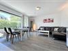Der offen gestaltete Küchenbereich grenzt an das Wohnzimmer und ist mit modernen Geräten ausgestattet: Neben einem Ceranfeld stehen ein Backofen, eine Mikrowelle, eine Spülmaschine, ein Kühlschrank mit Gefrierfach sowie diverse Küchenutensilien, Geschirr und Besteck zur Verfügung. Für den Start in den Tag sorgt eine Kaffeemaschine, darüber hinaus sind ein Wasserkocher und ein Toaster vorhanden. Der Essbereich ist Bestandteil des großzügigen Wohnraums und lädt zu gemeinsamen Mahlzeiten ein.