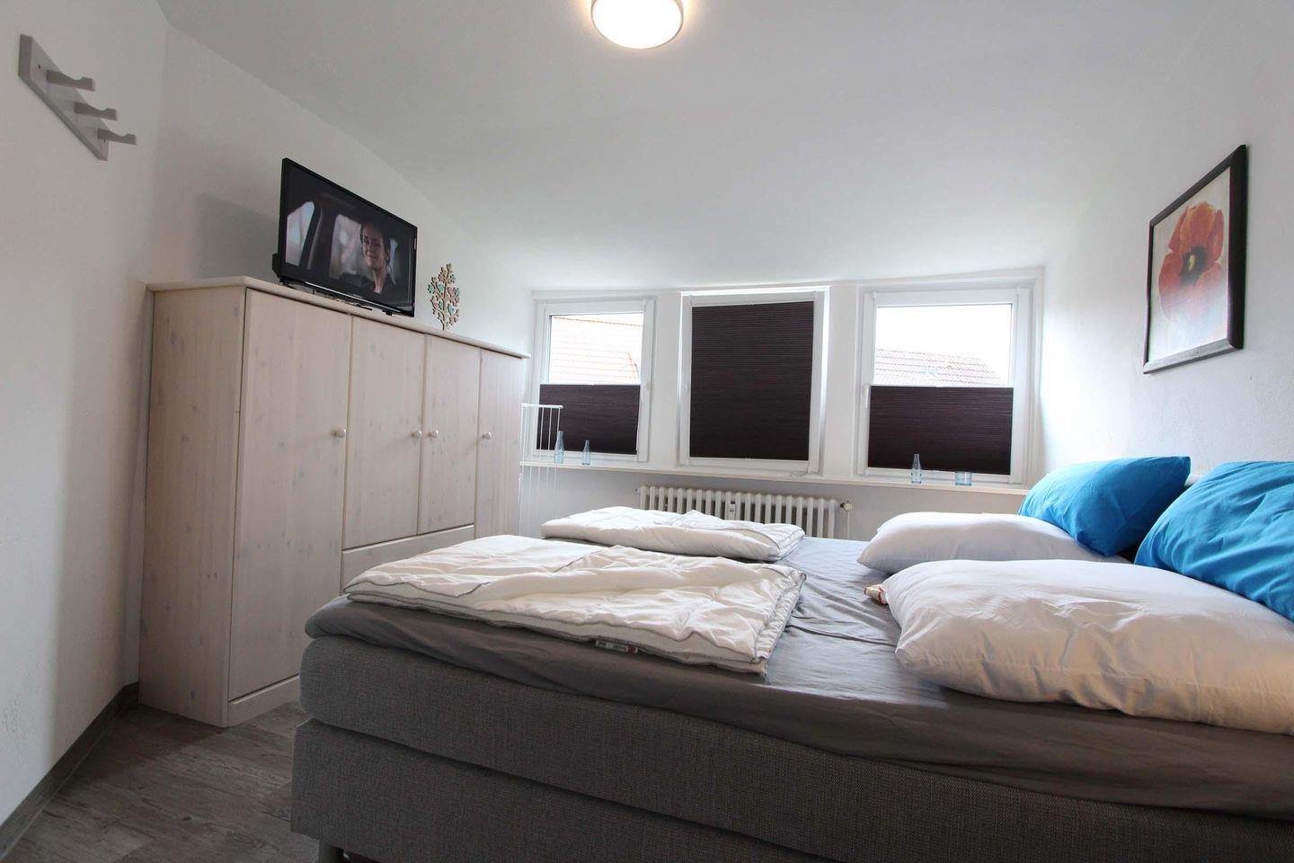 Die Wohnung Haus Anna Whg. 4 OG bietet auf 55 m² im 1. Stock zwei Schlafzimmer, einen offenen Wohn- und Essbereich mit Kaminofen sowie eine moderne, voll ausgestattete Küche. Der Balkon lädt zum Verweilen ein. WLAN, drei TVs, Waschmaschine und Trockner (gemeinschaftlich) sowie ein Privatparkplatz sind vorhanden. Der Sandstrand ist nur 270 Meter entfernt.