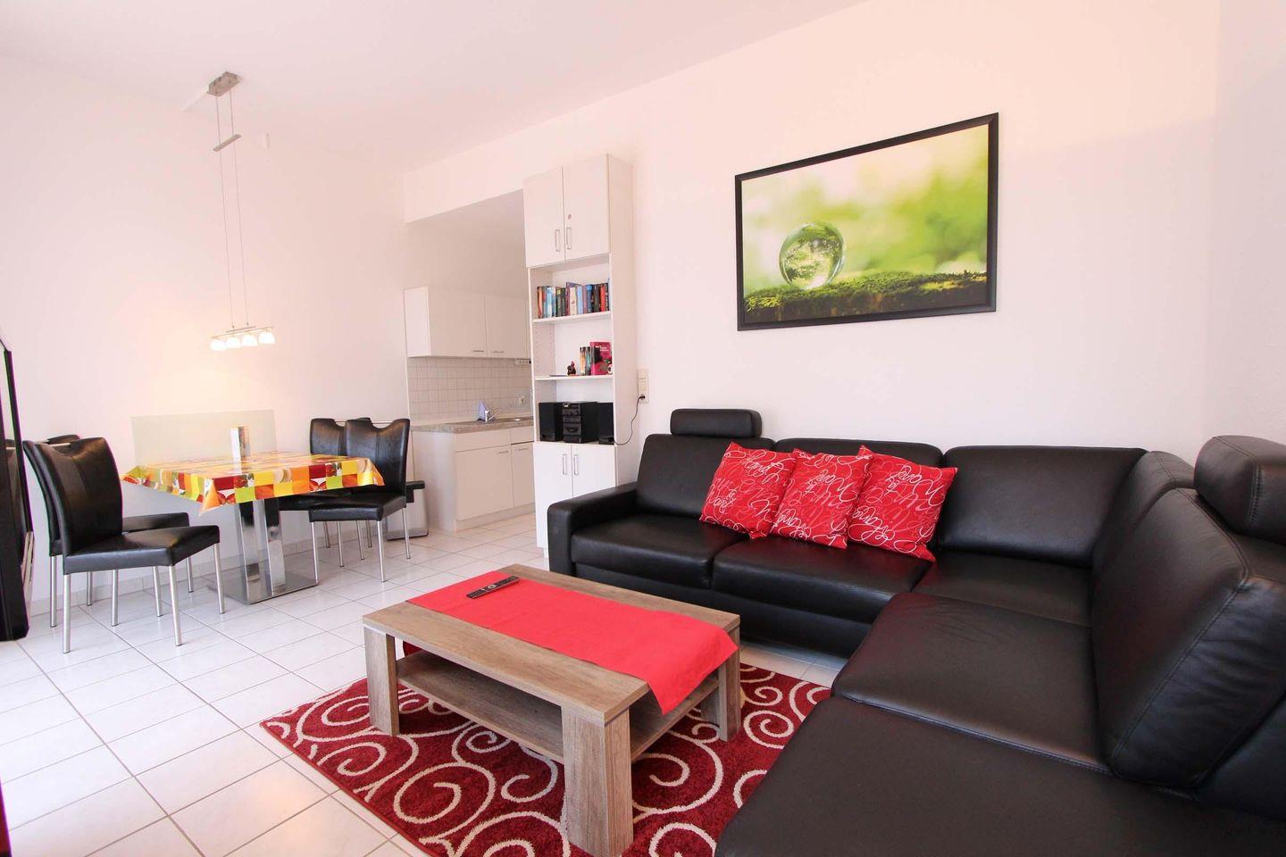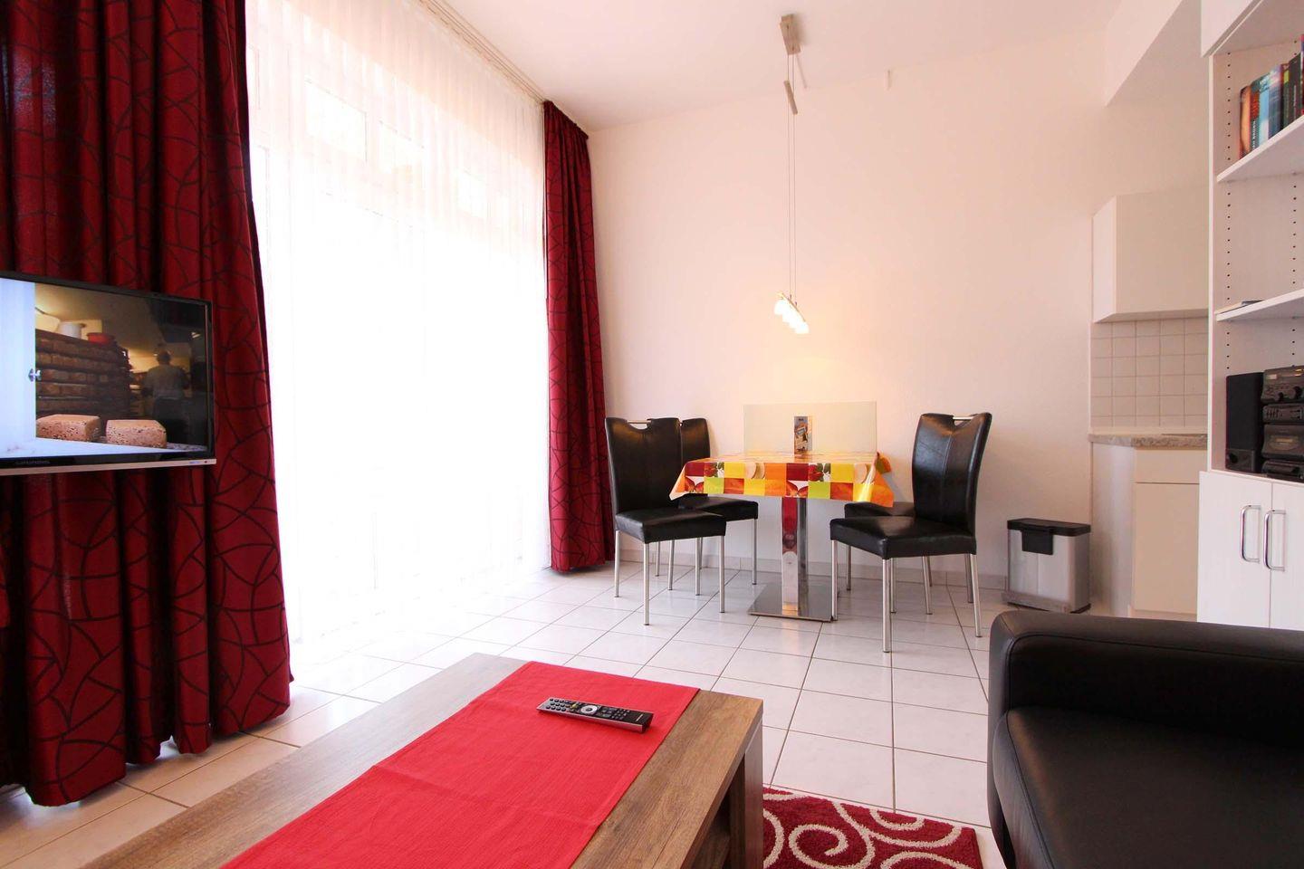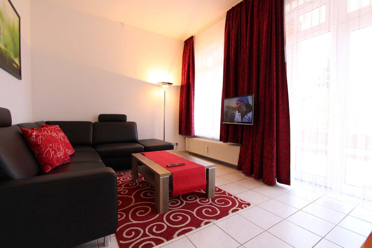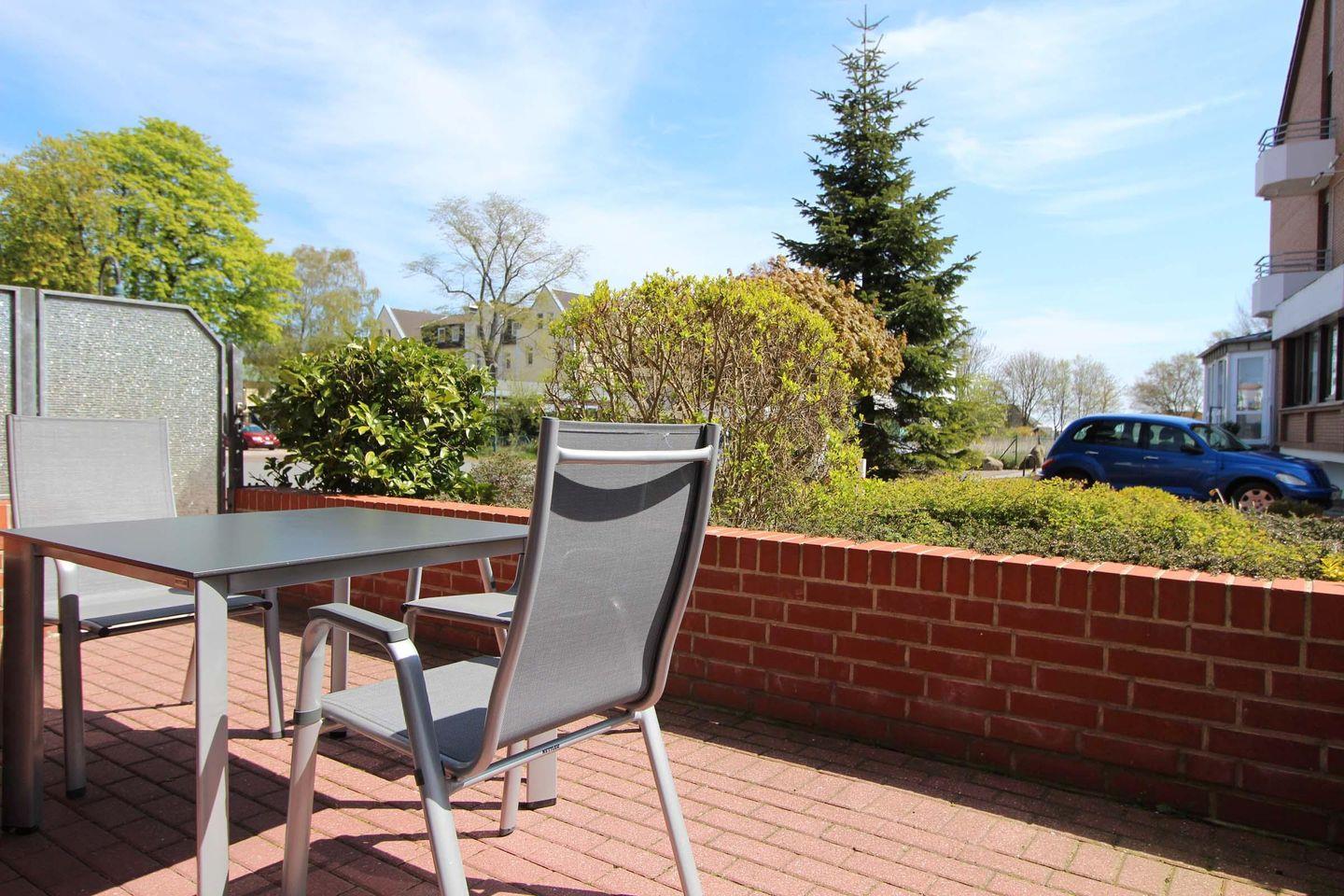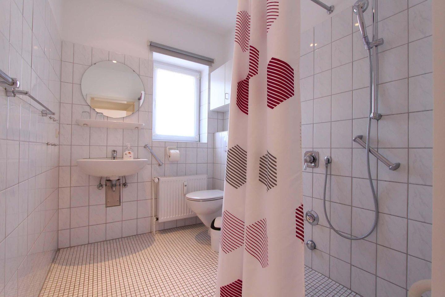 Im Herzen von Kellenhusen liegt die Wohnresidenz. In dieser Wohnanlage befindet sich auch die Wohnung 14, welche mit 55 qm Erdgeschoss liegt. Das Wohnzimmer ist mit einer großzügigen Sofaecke eingerichtet. Außerdem befindet sich hier der Essbereich und die Küche mit einem Geschirrspüler und einer Mikrowelle im hellen Wohnbereich. Die zwei separaten Schlafzimmer sind beide sehr gemütlich und schön gestaltet. Im größeren Zimmer steht ein Doppelbett (2 Matratzen á 0,90x2,00m) und ein Kleiderschrank. Das zweite Zimmer ist bestens für eine Person ausgestattet und verfügt über ein Einzelbett (0,80x2,00m). Das Badezimmer der Wohnung ist barrierefrei gehalten, die Dusche ist ebenerdig und mit Griff ausgestattet. Die schöne, sonnige Terrasse ist Richtung Süd-Osten gelegen und teilweise überdacht. Bei dieser Wohnung liegt das schöne so nah, denn die Ostsee erreicht man schon innerhalb von 2 Gehminuten. Auch dem Urlaub mit dem Haustier steht generell nichts im Wege, denn nach Rücksprache und gegen Aufpreis sind Haustiere gestattet. Für mitgebrachte Fahrräder ist im Keller ein Abstellraum vorhanden. Sollte das Reisegepäck so gering wie möglich ausfallen, dann ist ein Wäschepaket für den Aufenthalt in Kellenhusen gegen Gebühr einfach buchbar ebenso stehen im Haus Waschmaschine und Trockner gebührenpflichtig zur Verfügung.